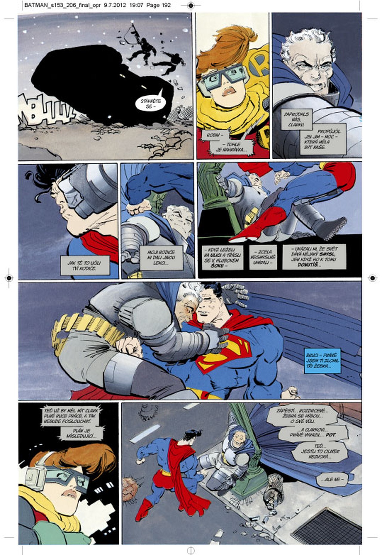 Proti Batmanovi se nakonec postaví i pragmatický Superman, který pro své přežití v nové době obětoval svou svobodu a stal se přizpůsobivým služebníkem systému.
