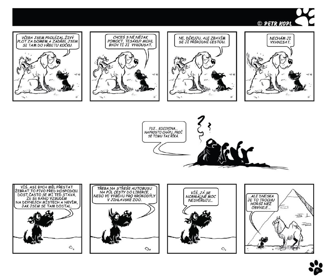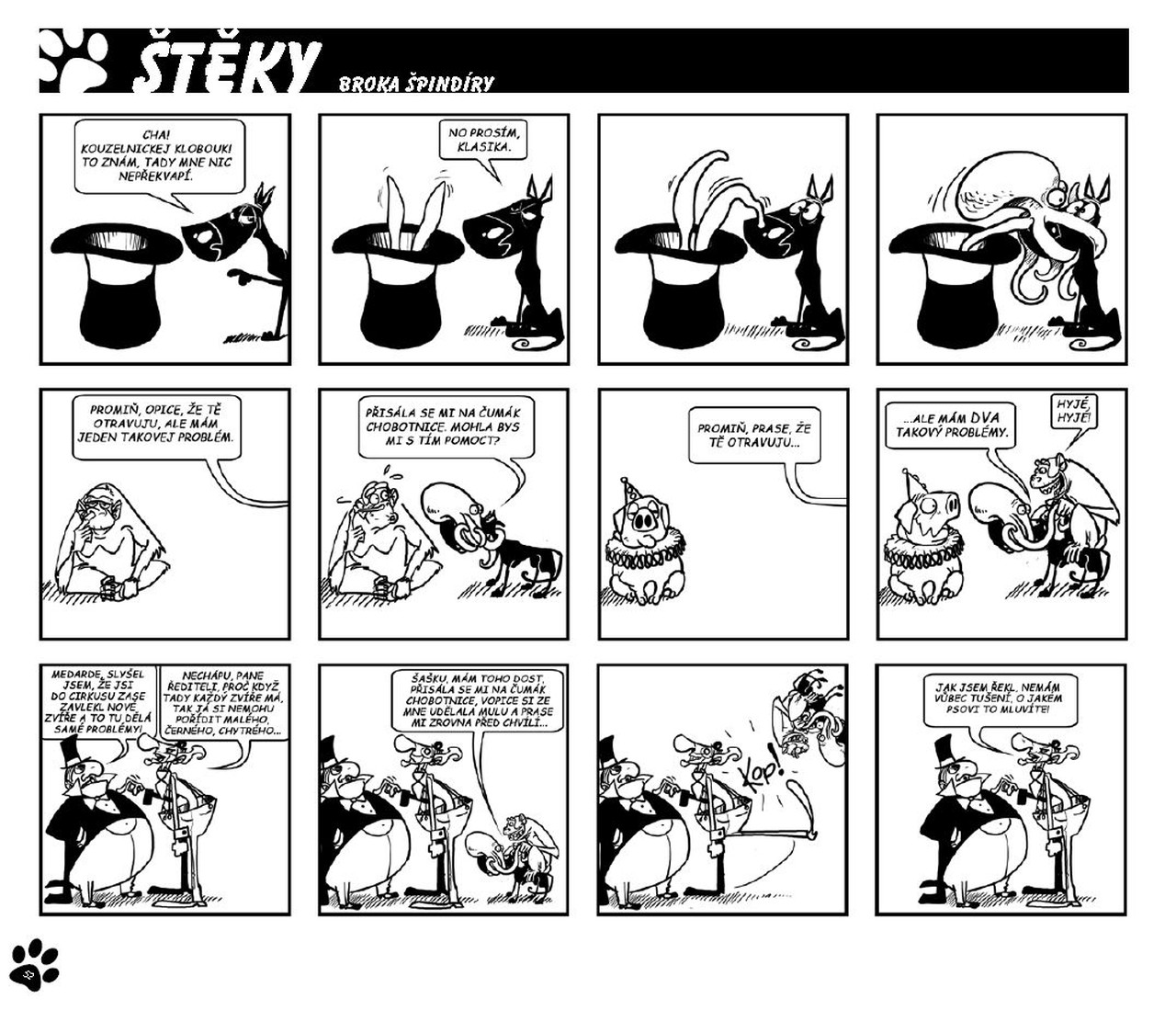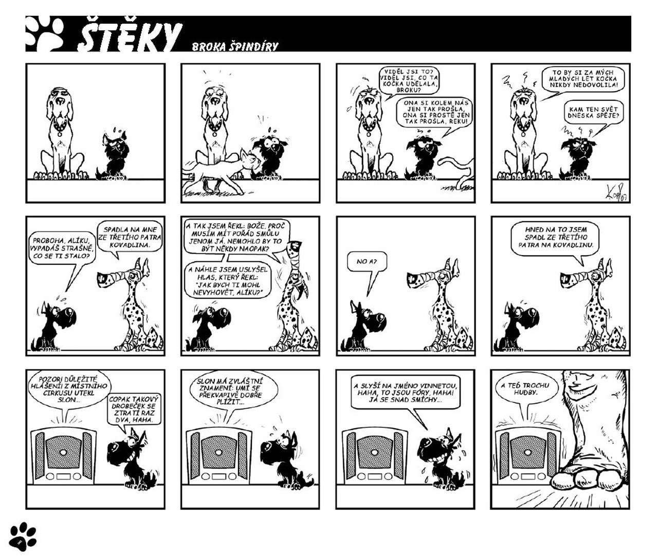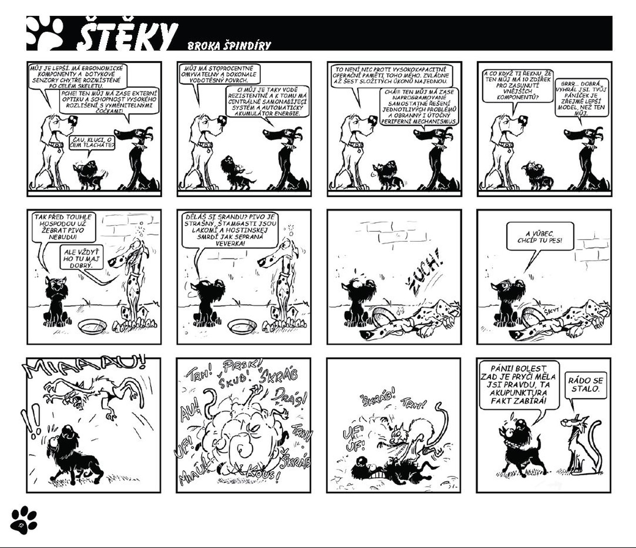Pes, který se vyrovná těm nejslavnějším kocourům? Ano! A ještě jednou ano! Brok je neskutečně vtipný a i když ke konci už trošičku ztrácí koule, stejně je to jeden z nejleP(S)ÍCH stripů vůbec. A mě jen může těšit, že je z našich luhů a hájů. Kolika roků se psi vůbec dožívají? 12-ti? 16-ti? Já doufám, že to alespoň na dvě knížky u Broka ještě bude. /p3tris/