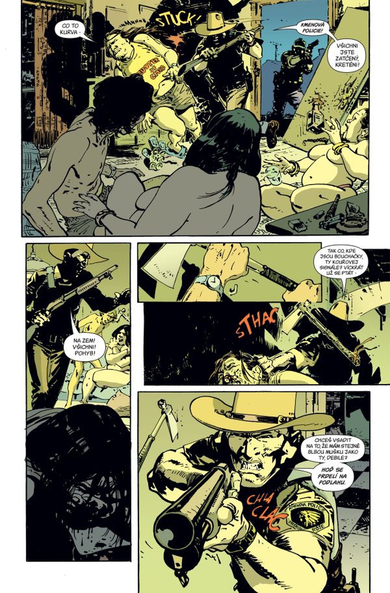 Prvoligová drsná škola z neokoukanýho prostředí indiánský rezervace, vyprávějící ve svižným tempu a neučesaný, silně atmosférický kresbě vo drsnejch chlapech a jejich drsnejch verbálních i nonverbálních konfrontacích. Jo, je to drsný, vo tom žádná. A skvělý. /Choze/