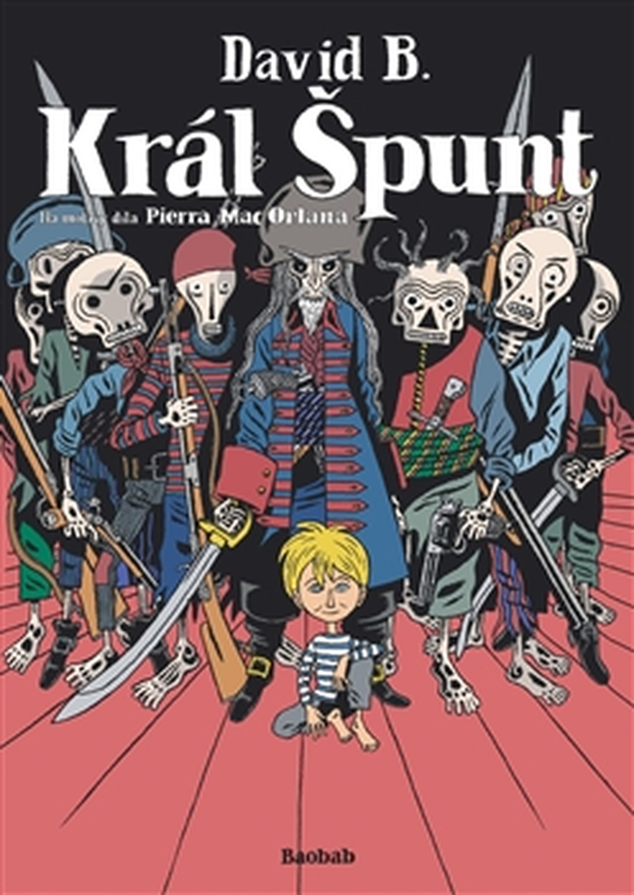 Posádka Bludného Holanďana, přízračné lodi odsouzené na věky křižovat sedm moří bez možnosti přistát, zrovna nehýří dobrou náladou. Teprve růžolící batole, které začátkem dvacátého století zachrání z potápějícího se zaoceánského parníku, vrátí mrtvým námořníkům chuť do života, tedy do smrti. Malé děcko je v jejich očích králem. Mrtví piráti přepadají lodě a drancují kuchyňské sklady, aby pro svého krále zajistili mléko a piškoty. Král Špunt, jak mu říkají, vyrůstá mezi kostlivci a sní o dni, kdy bude mrtvolou jako ostatní. Ale jeho cesty se mají ubírat jinudy. Kratičkou fantastickou povídku francouzského spisovatele Pierra Mac Orlana (1882–1970) proměnil David B. (1959), autor slavné série Padoucnice, v humornou, lehce ponurou a zároveň poetickou bajku o dětství, o přípravě na život, potažmo na smrt. Adaptací Mac Orlanovy povídky si David B. dle vlastních slov splnil dávný sen: „Ten příběh o dítěti, které se připravuje na život mezi mrtvými, mě dojal. Je to svým způsobem můj vlastní příběh.“