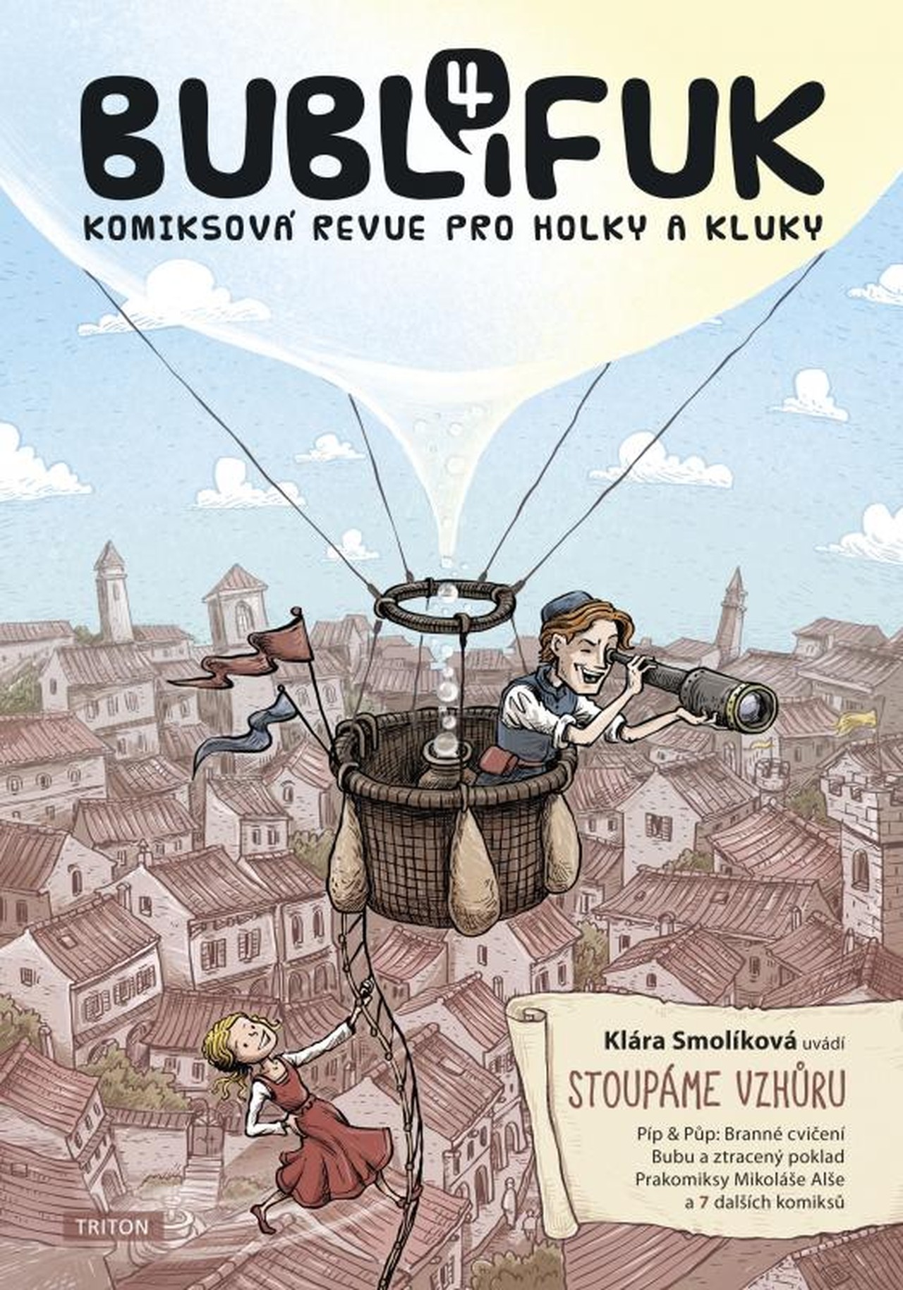 Co se chystá do čtvrtého čísla Bublifuku? Fernando a Stella předbíhají dobu a vynalézají kolesovou loď! Vymýšlí Jiří W. Procházka a kreslí Vojtěch Šeda. Jak se dělá komiks, ve kterém myšák Chlup vysvětlí, jak se neztratit v čase a rámusu! Píše Klára Smolíková a kreslíl Viktor Svoboda. Roboti Píp a Půp a díl nazvaný Branné cvičení! Píše Martin Šinkovský a kreslí Ticho 762. Zelený vlk a jeho další dobrodružství "Nahatí nic neztratí" chystá Kimea a kreslí Karel Jerie. Prakomiksy! Tomáš Prokůpek připravil stránku o Mikolášovi Alšovi a díl pojmenoval "Písmenkoví hrdinové a nedobrovolní aviatici". Tři mušketýři a příhoda Velká mela! Napsal a nakreslil Petr Kopl. Hilfréda Hubertuse Babočku a jeho další dobrodružství nazvané "Invaze z vesmíru" chystá Tomáš Kučerovský. Trampoty principála Piškoty a epizoda Zachránce! Píše Jiří W. Procházka a kreslí Kateřina Čupová. Knihomol Bubu a příhoda Bubu a ztracený poklad. Píše a kreslí Bára Buchalová. Piráty na suchu čekají na ostrově další patálie. Příhodu "Bez vody a bez guláše" napsala je Klára Smolíková a kreslí Lukáš Fibrich.