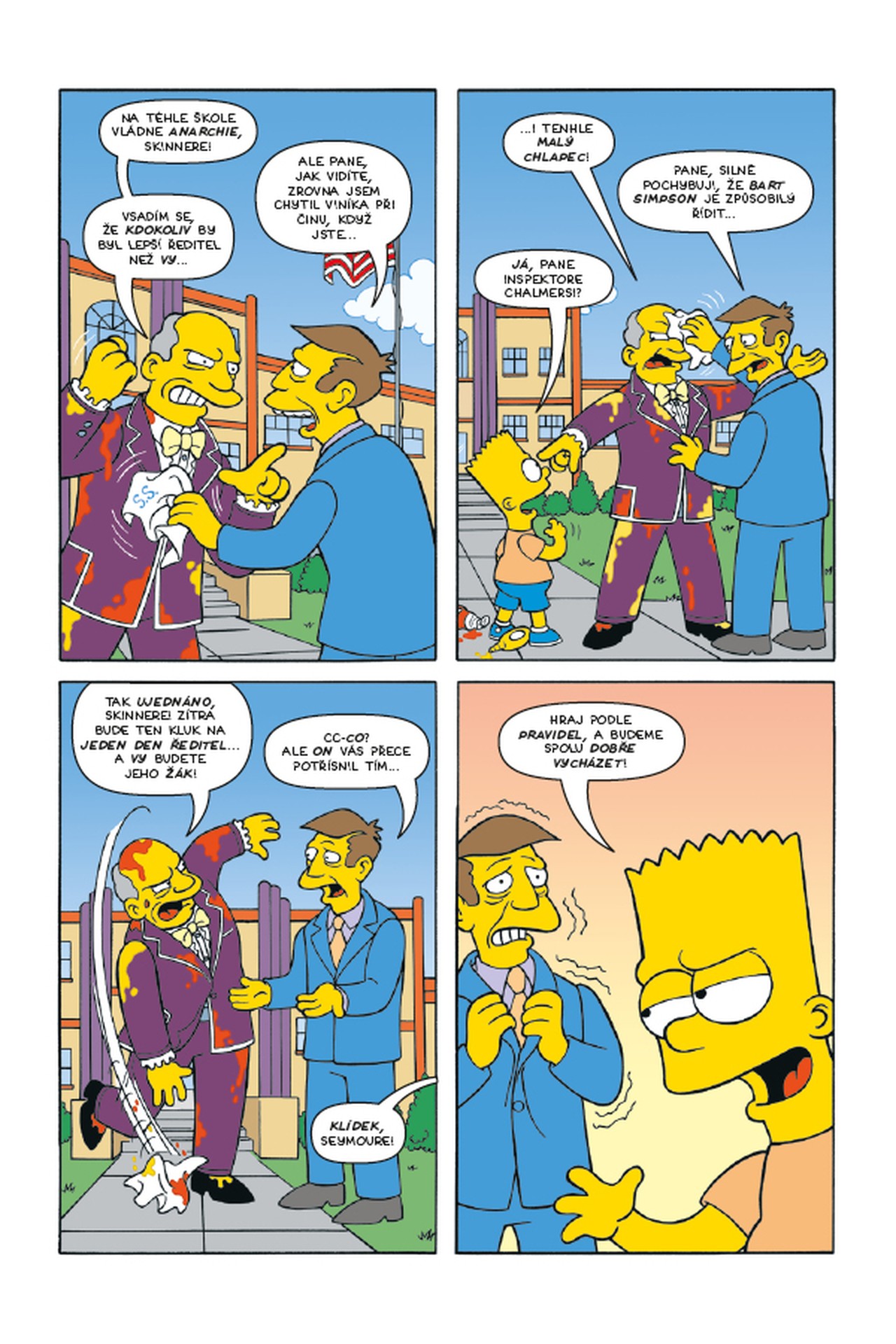 Bart se stane ředitelem školy a chudák Skinner se musí vrátit zpátky do školní třídy - coby žák! Milhouse vás naučí, jak být cool a poradit si s šikanou... a pak se do hry vloží Ralph Wiggum a pustí se do obchodování s komiksy! Můžete se začít těšit!