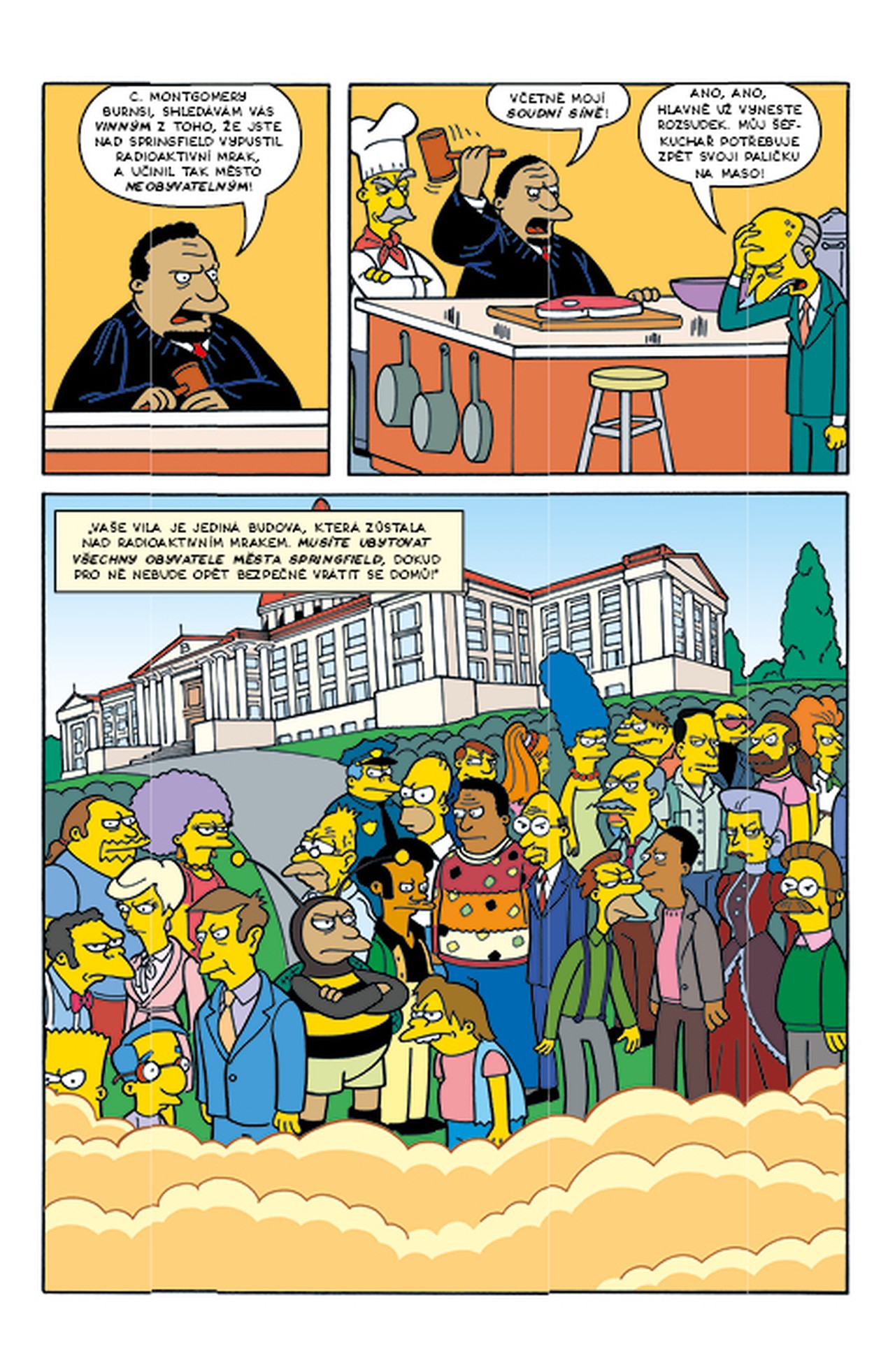 Připravte se na řetězovou reakci smíchu! Nad městem se roztáhl nebezpečný radioaktivní mrak... a obyvatelům Springfieldu nezbylo nic jiného, než se nastěhovat k panu Burnsovi. Vedle toho získaly Krustyburgery nebezpečnou konkurenci – hamburgery Homera Simpsona! Homer se také stane požárníkem, město zachvátí finanční krize a Krusty začne Marge radit, jak naložit se životem. To nemůže dopadnout dobře.
