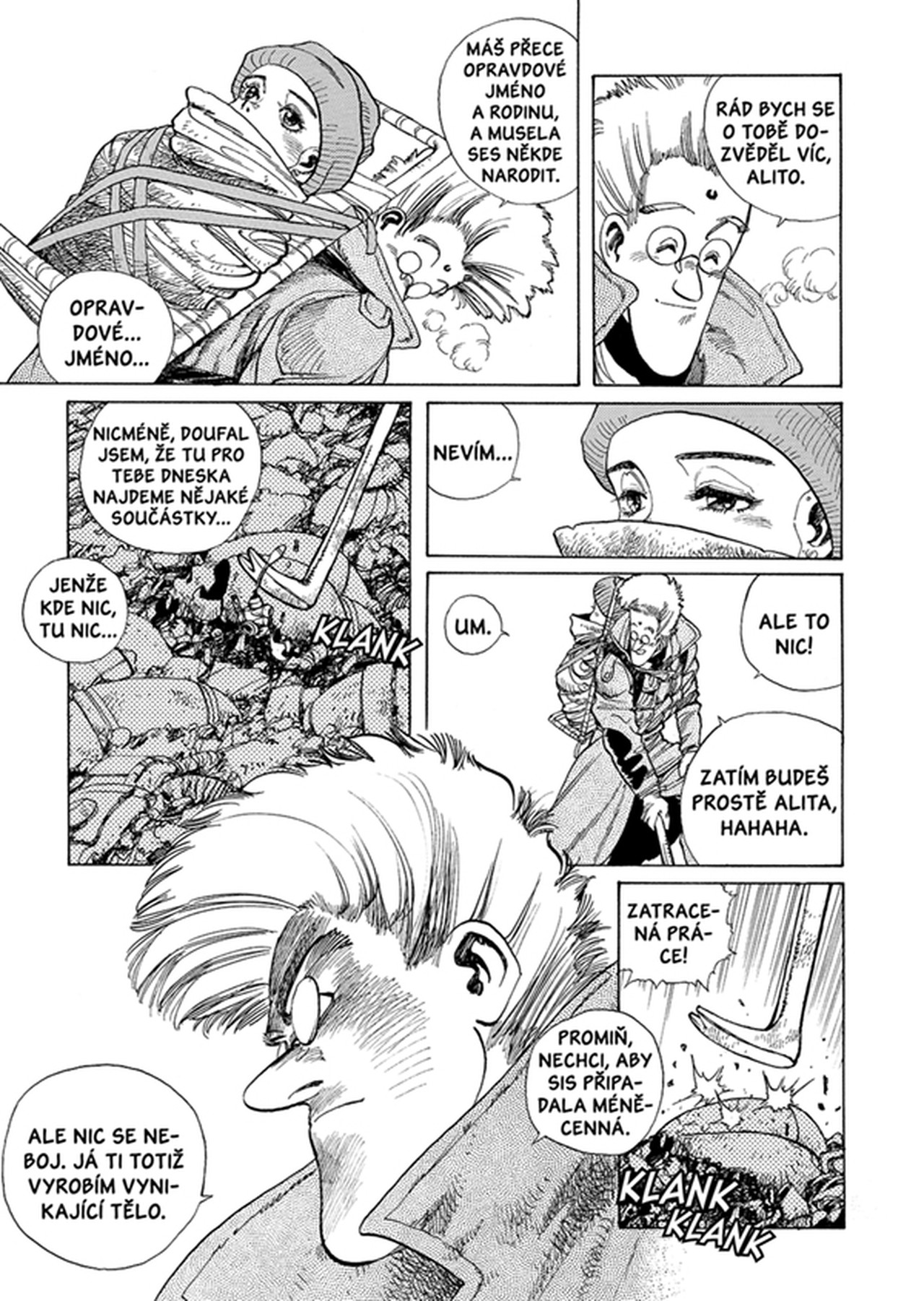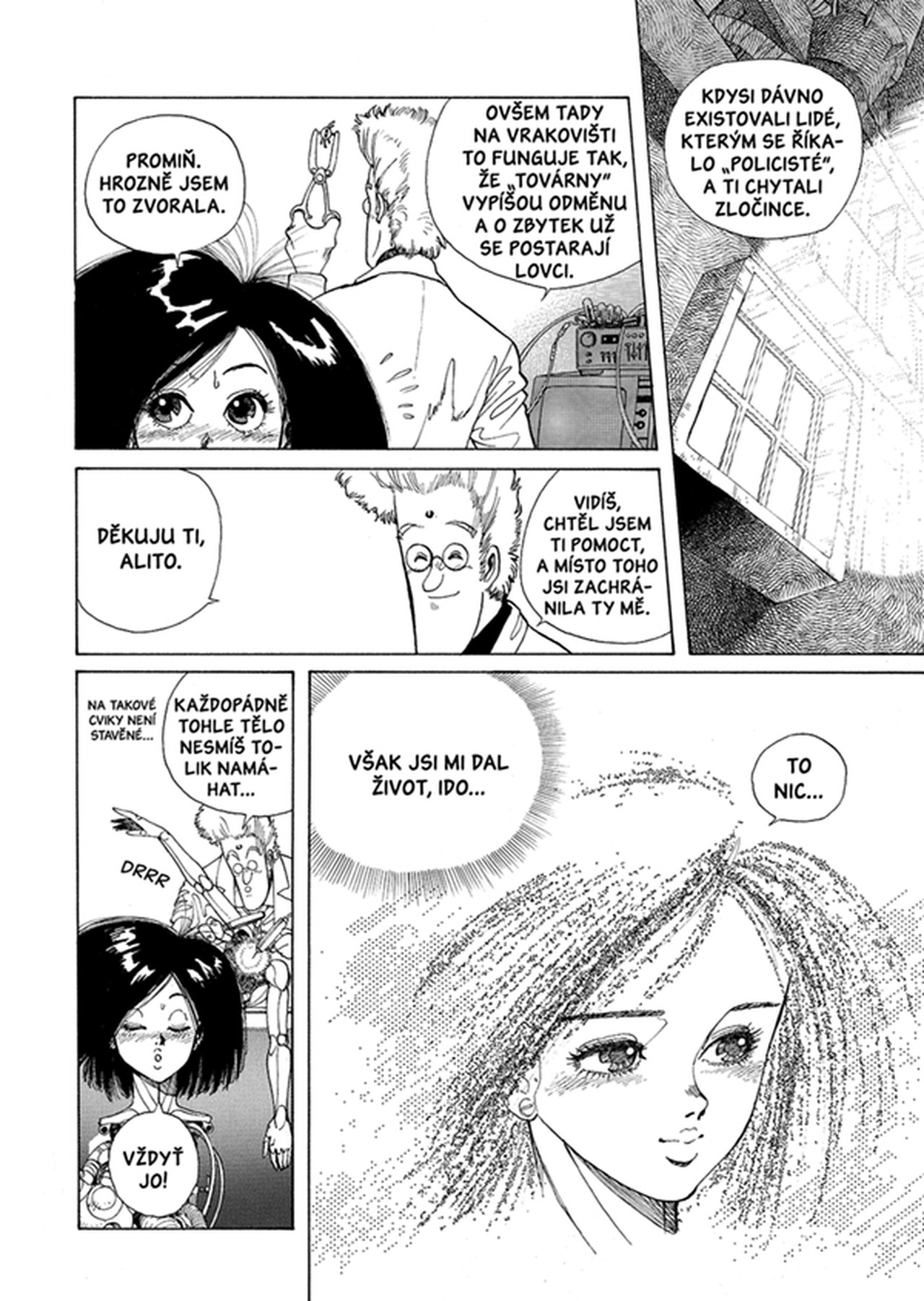 Epická akční sci-fi o bojovém robotovi, kterého najde jednoho dne doktor na vrakovišti. O robotovi, který nemá paměť, ale dokáže bojovat. Legendární manga, u které už několik let uvažuje James Cameron o filmovém zpracování, přináší nejen monumentální souboje, ale i propracovaný sci-fi příběh a velmi silné emoce. Příběh zranitelného, ale přitom smrtícího robota, který byl svržen z nebes na zem a hledá svoje místo v životě, k tomu přímo vybízí.