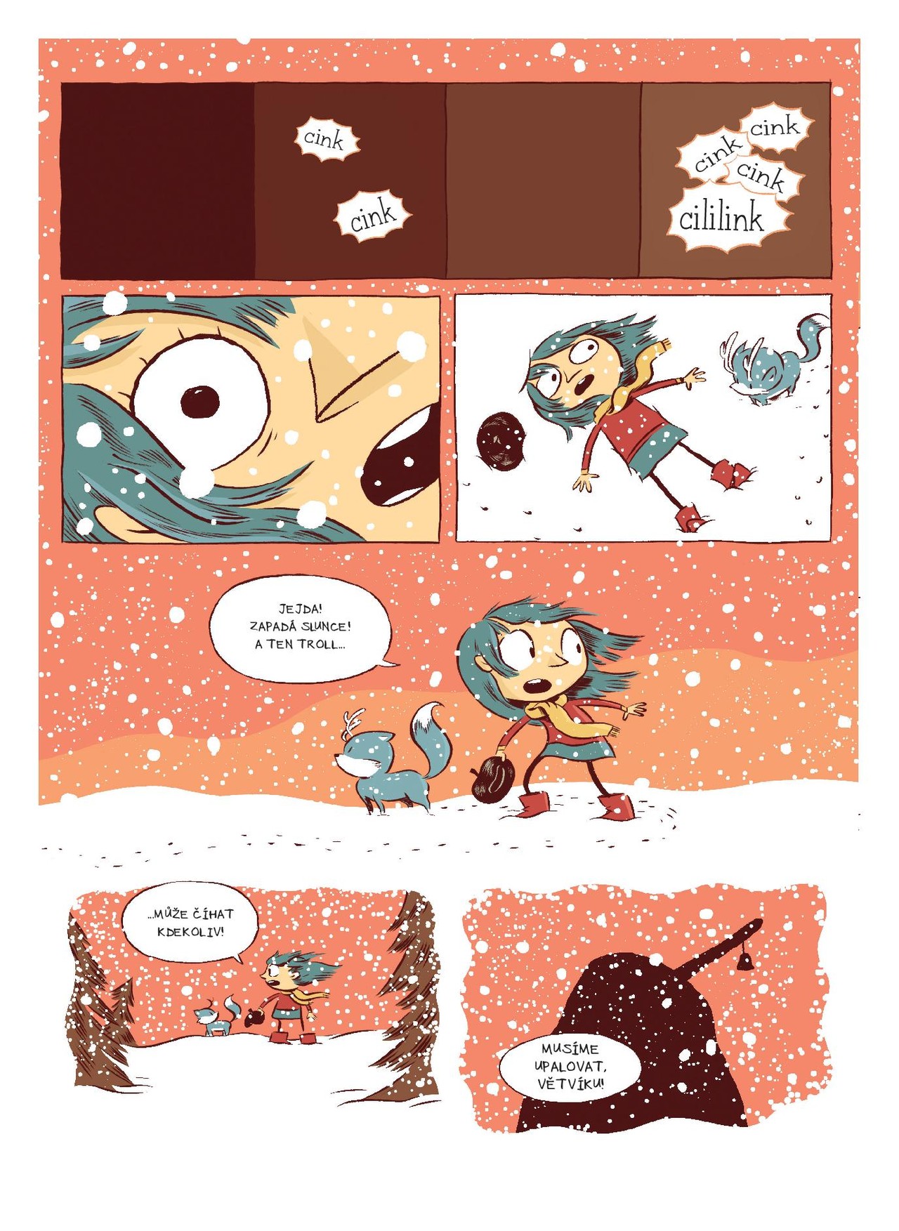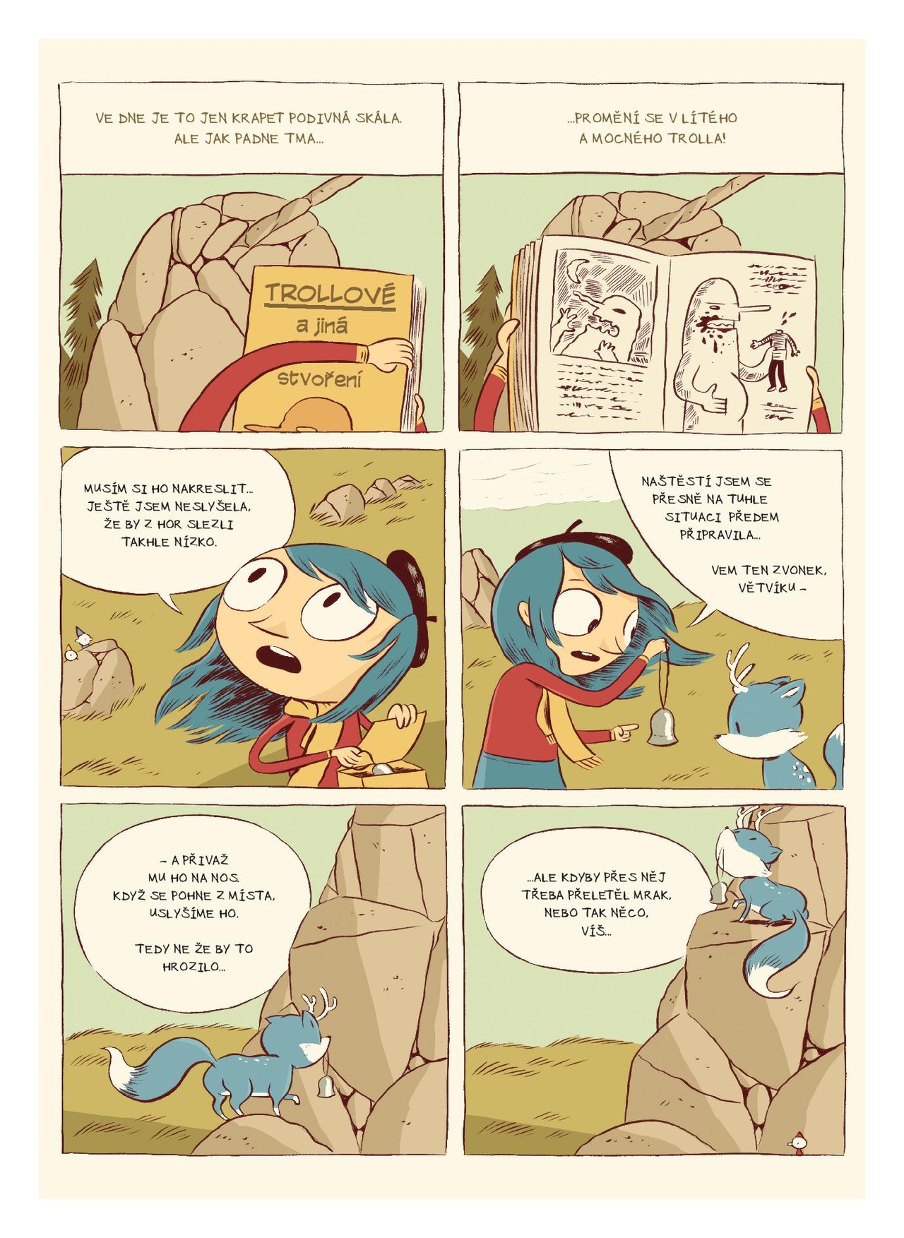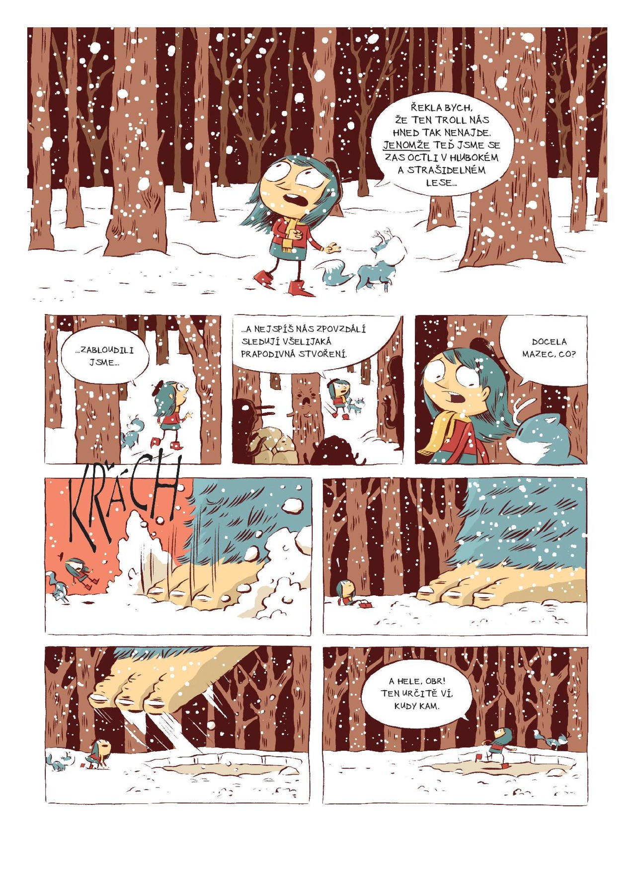 Ani zarach nezabrání Hildě ve velkolepém dobrodružství! Malá rozumbrada je už zkušenou průzkumnicí, která vyzrála na obry i pidilidi, přežila setkání s černým psem na skautském táboře a zachránila ptáka bouřliváka, mytický symbol města Trolberg. Ale nic ji nemohlo připravit na to, co nastane teď -- na dosud nejnebezpečnější výpravě ji doprovází nejen neohrožený mazlíček Větvík, ale nedopatřením i vystrašená maminka. Společně se octnou v tajemném kamenném lese a musí najít cestu domů dřív, než je polapí jeho nevyzpytatelní obyvatelé… Neotvírejte tento komiks, pokud nechcete prožít příběh tak bláznivý a napínavý, že vám z něj zmodrají vlasy!