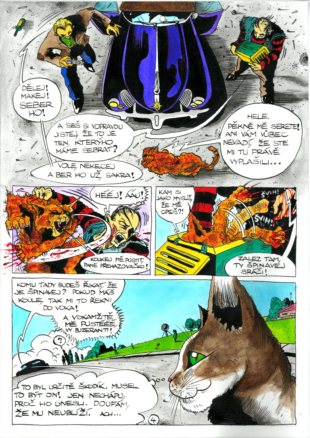 Škodík je celkem normální kocour, který je ovšem výbušný a nebrání se kdejakým rvačkám, o čemž svědčí i jeho vyškrábnuté levé oko. Jednoho odpoledne, když si bezproblémově vykračuje napříč městem, je z ničehonic unesen dvěma gangstery a odvezen na zcela neznámé místo, kde si jej chce pořádně podat velký kápo za věc, na kterou si Škodík vůbec nepamatuje. Jediné, co se Škodíkovi v tom okamžiku odehraje v hlavě, je rychle utéct pryč...a dát si lahodnou kapsičku.