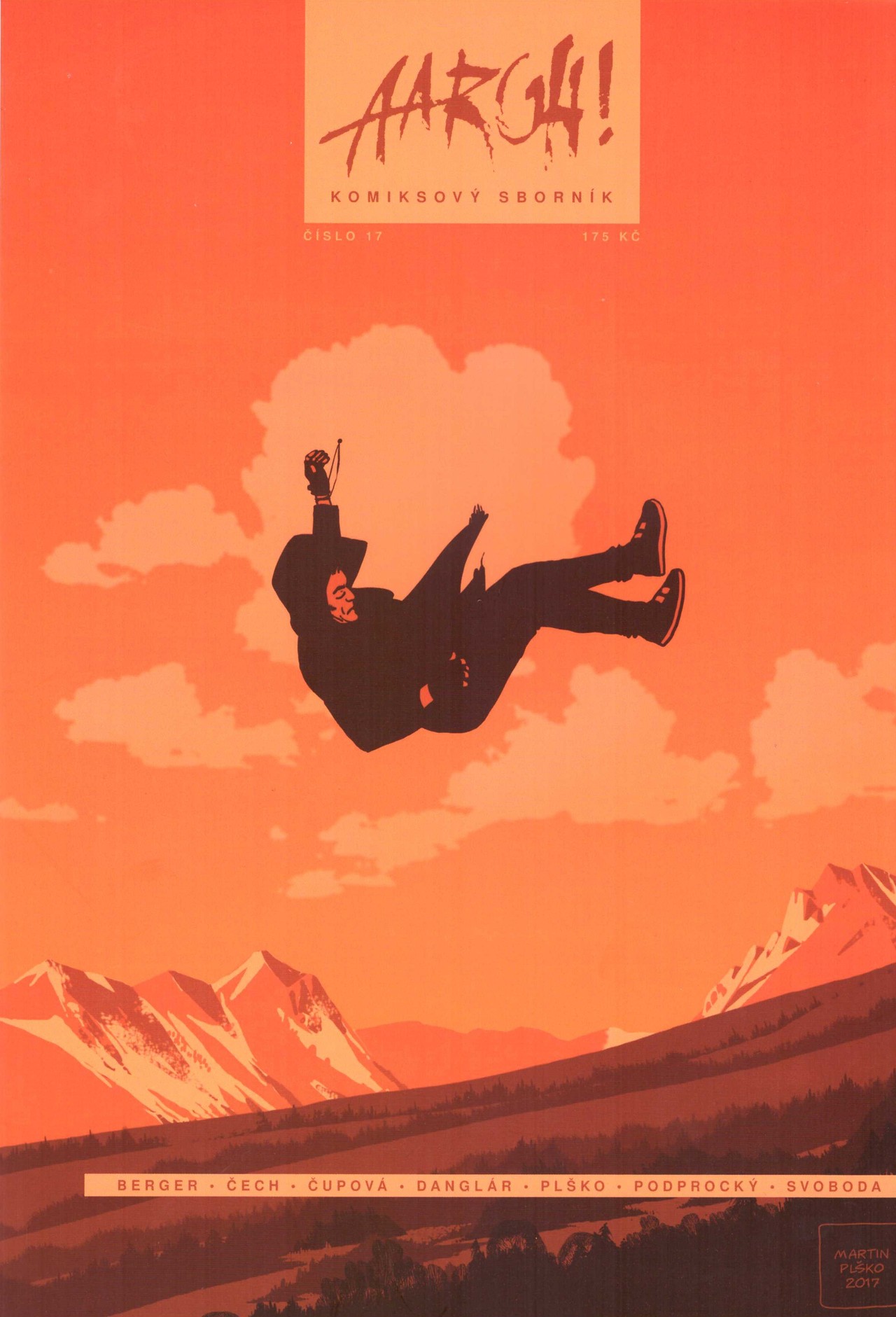 AARGH! 17 opět nabízí to nejlepší z (nejen) českého a slovenského komiksu. Kategorii klasiků reprezentuje Jozef Gertli Danglár, v jehož batmanovské pastiši dostanou na frak sovětští tankisté, nebo Lucie Lomová, která z netradiční perspektivy zachytila sarajevský atentát. V komiksech tvůrců střední generace dostala prostor řada známých hrdinů – Mikuláš Podprocký ve svém novém příběhu zavádí čtenáře do světa svého grafického románu Divočina, Branko Jelinek znovu nechává naplno pracovat obrazotvornost Oskara Eda, Dan Černý nasadil svého jedenáctiletého génia Fanouše na další paranormální případ a Pavel Čech se vydal na novou výpravu do Stínadel. Nejmladší autorskou vlnu zastupuje Kateřina Čupová, Rozálie Kirschová, Ester Kuchynová, Viktor Svoboda nebo Marek Berger, jehož příběh vnese trochu světla do Pérákových normalizačních aktivit.