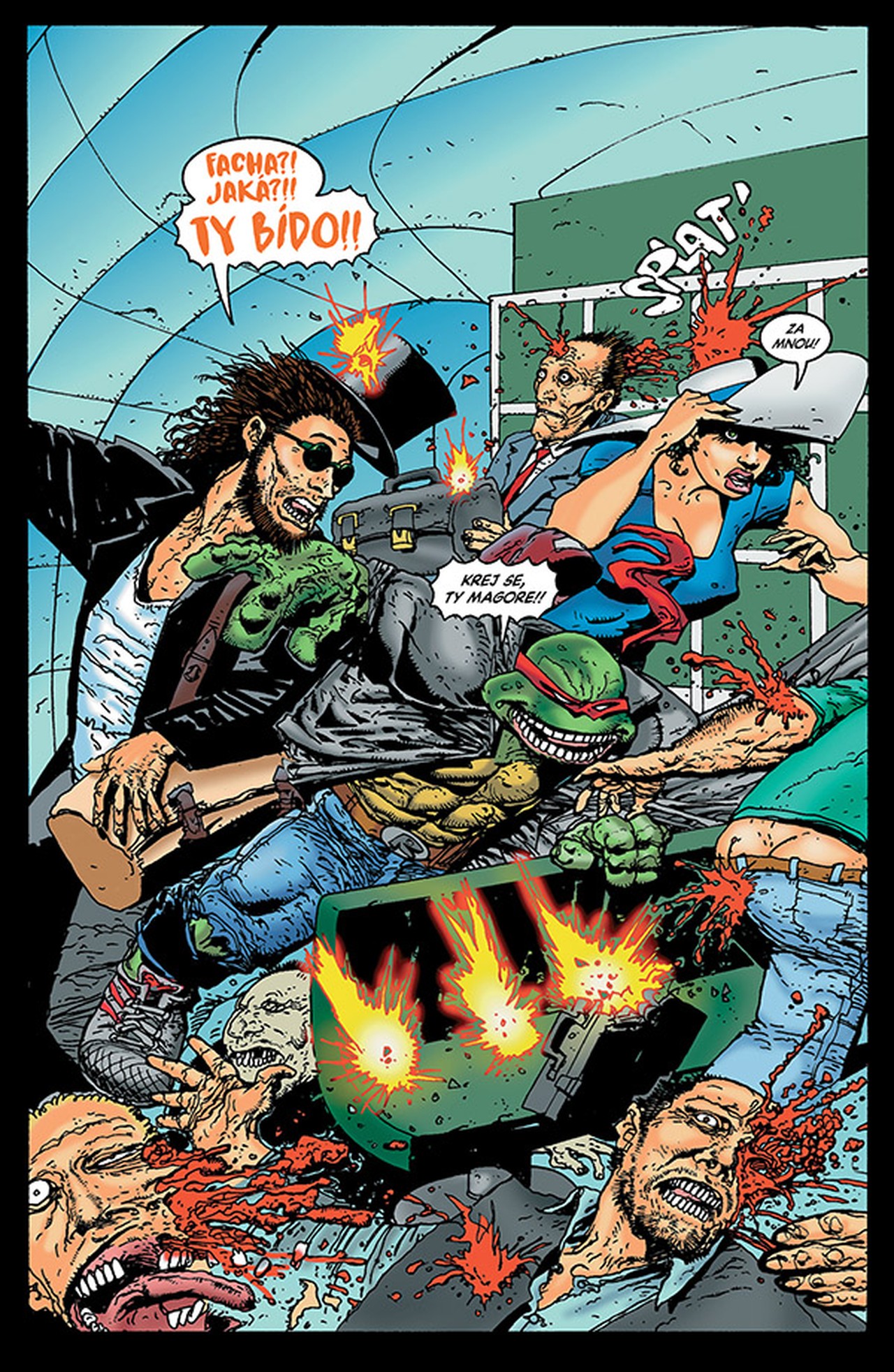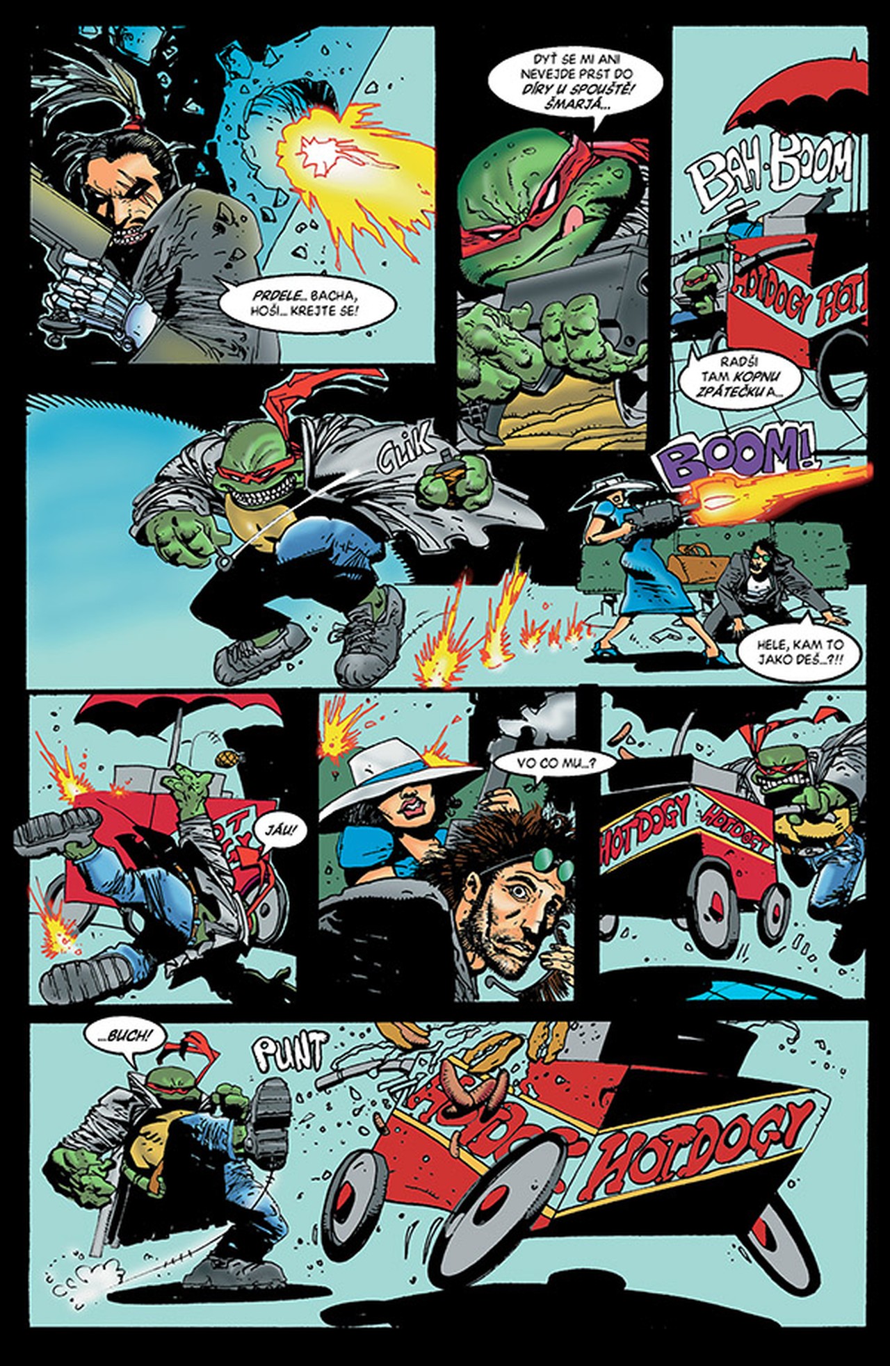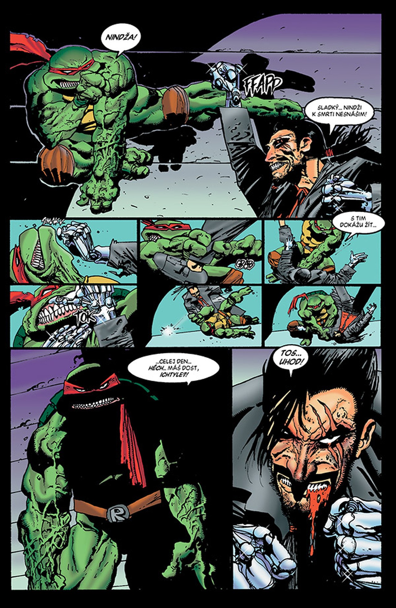 Ano, ten Simon Bisley (Lobo: Poslední Czarnian, Sláine: Rohatý bůh) se pustil i do kreslení želváků! Tedy, ne všech. Hrdinou příběhu je Raphael, který se spolu s Caseym Jonesem pustí do likvidace padouchů – ať už jsou to gangsteři, poldové, nebo cyborgové. Tyhle želvy rozhodně nejsou pro děti! Je to jedna velká zběsilá akční jízda plná střelného prachu a starého dobrého násilí!
