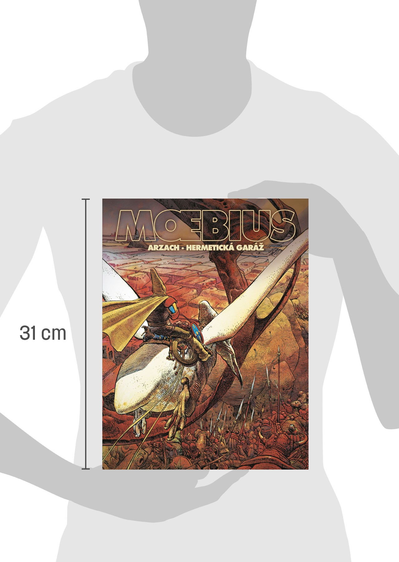 Mlčenlivý bojovník prolétá fantaskními světy, aby sváděl kruté a komické boje s bizarními a obřími protivníky. Snové sci-fi příběhy zasahující čtenáře melancholickou náladou a neuchopitelnou atmosférou. A spolu s ním přicházejí bizarní příběhy dadaistického rázu jménem Hermetická garáž! Dva příběhy, které předvádějí Moebia v jeho nejlepší formě a podobě. Vychází ve velkém, luxusním vydání, doplněném o důkladný rozbor Moebiova díla a malířského stylu!