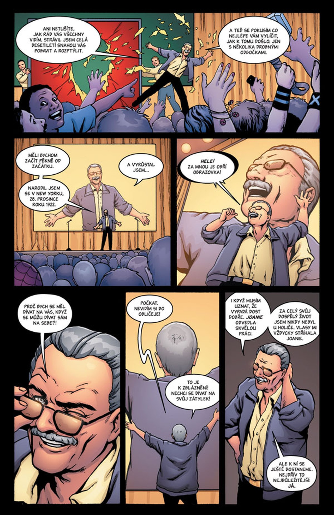 MUŽ, KTERÝ STVOŘIL SPIDER-MANA, X-MENY, HULKA A ZÁSTUP DALŠÍCH SUPERHRDINŮ, ZDE PŘEDSTAVUJE SVŮJ ŽIVOT A DOBU V STRHUJÍCÍCH KOMIKSOVÝCH VZPOMÍNKÁCH.