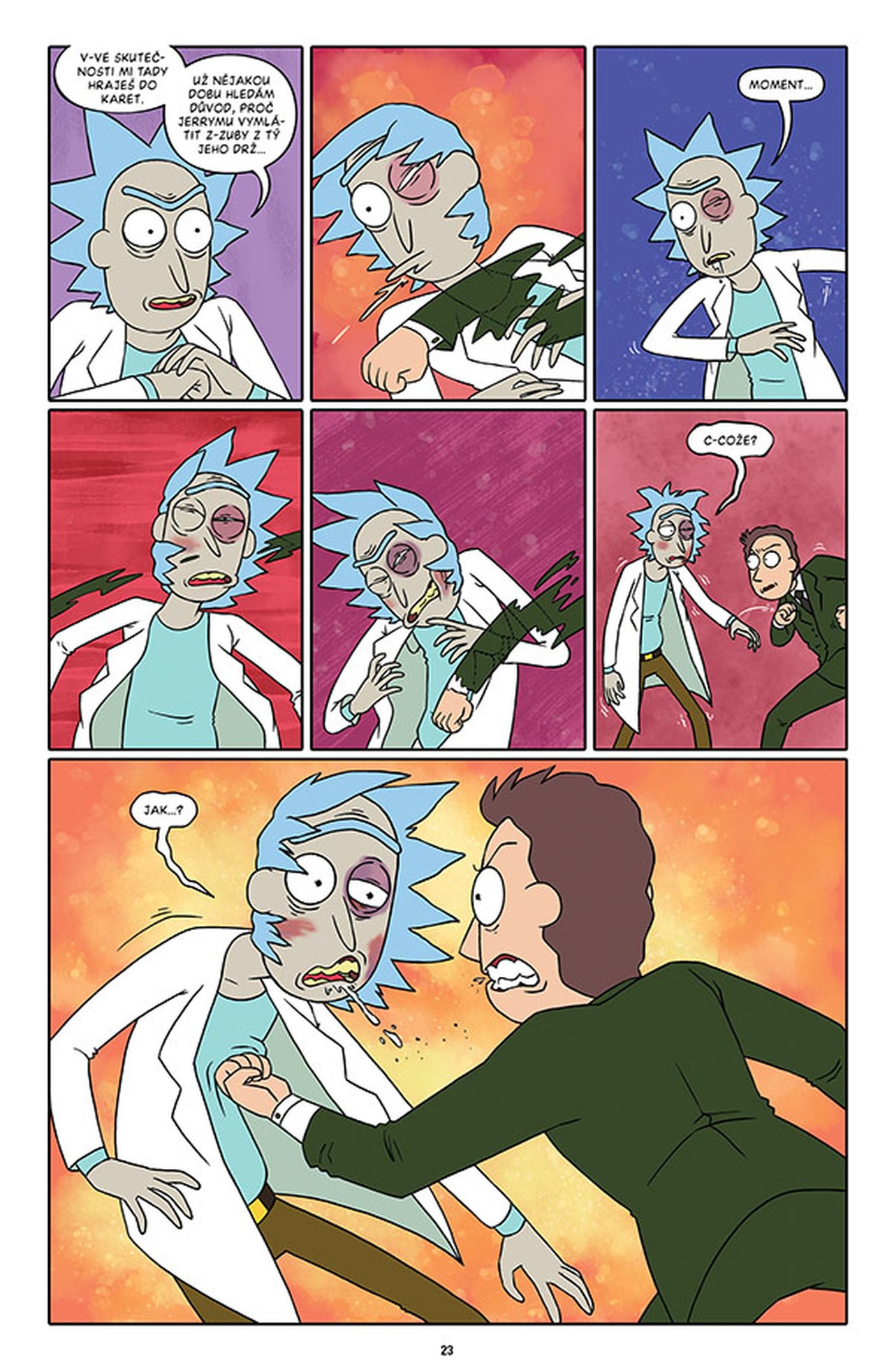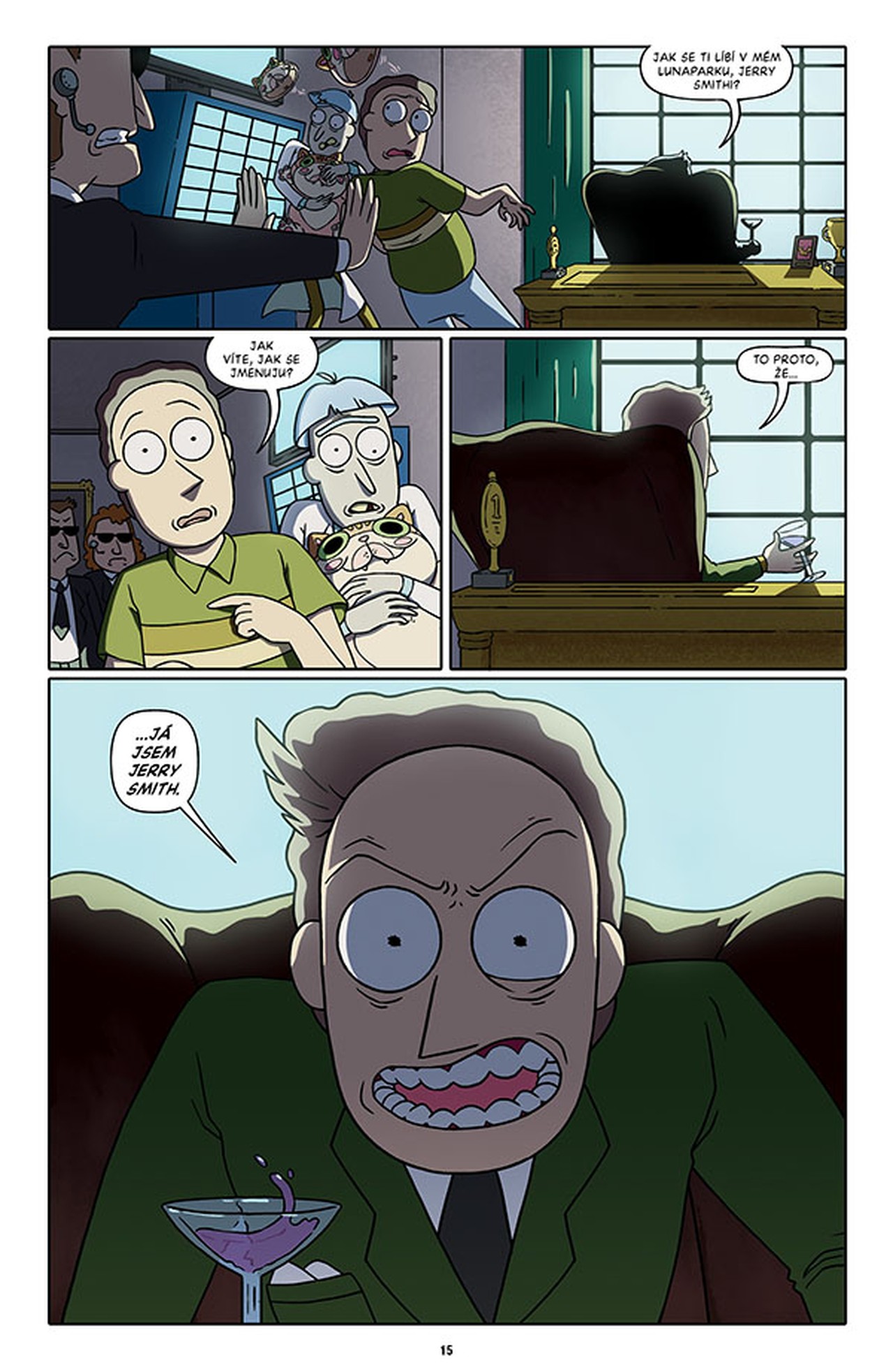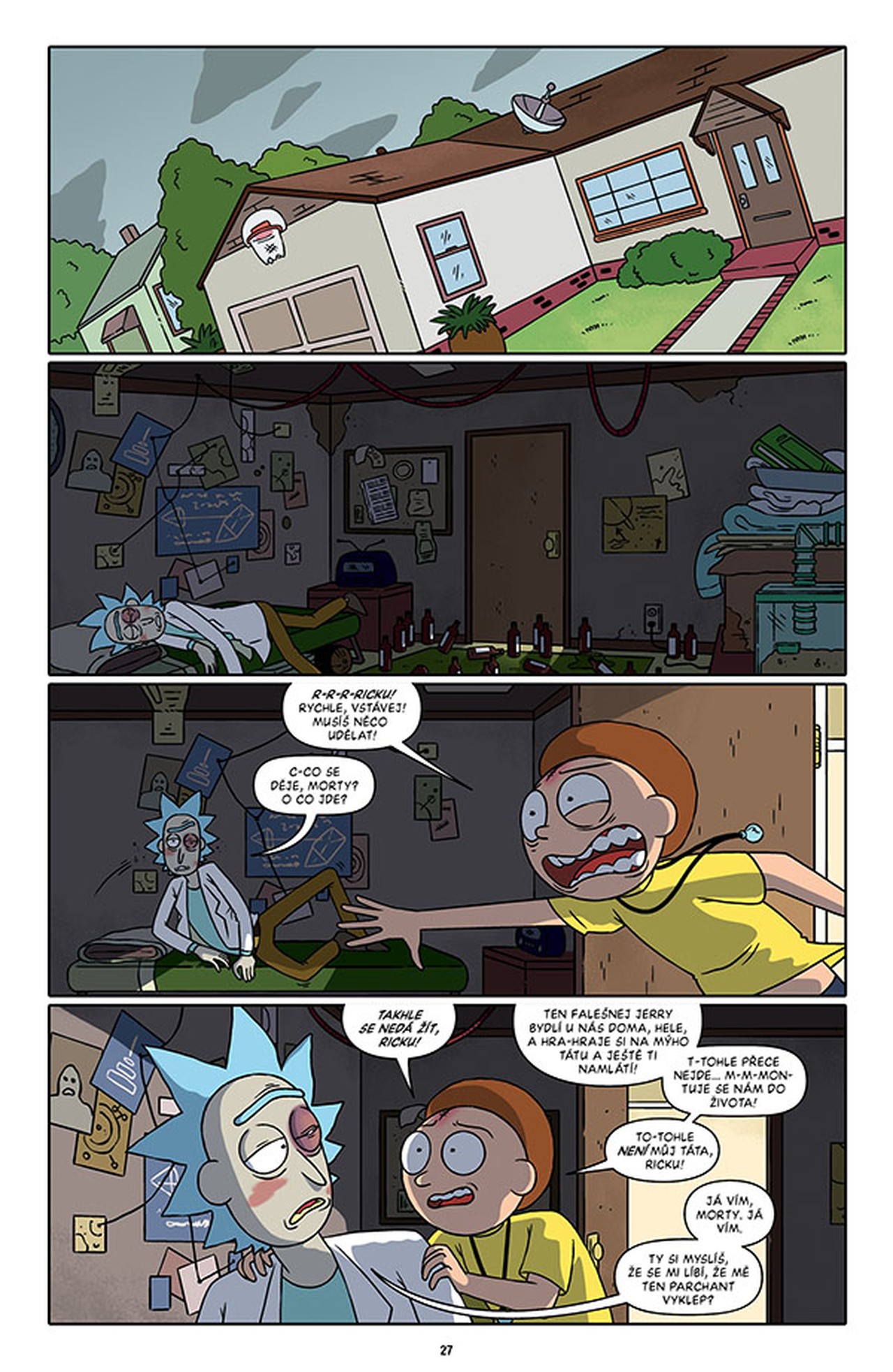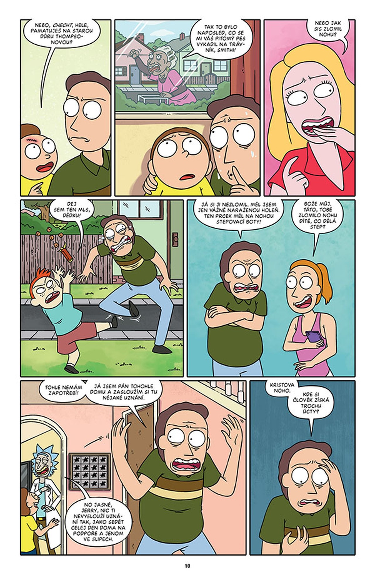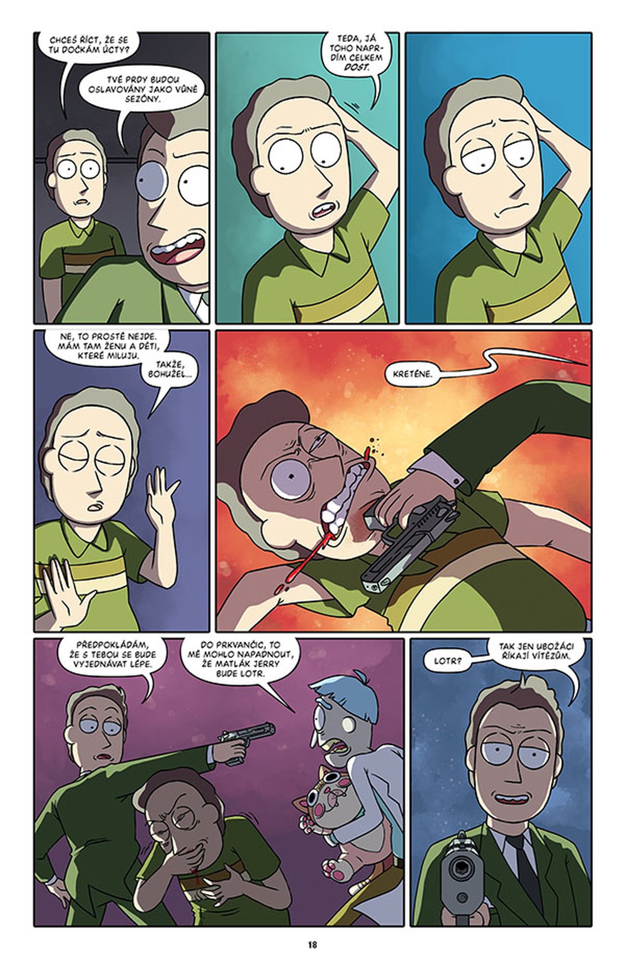 Sledujte degenerovaného génia Ricka Sancheze a jeho koktajícího vnuka Mortyho při jejich dobrodružstvích na nejzazší hraně času, prostoru a maxima toho, co se dá ještě Jerrymu odpustit. V tomto svazku najdete třídílný příběh scenáristy nominovaného na Eisnerovu cenu Kylea Starkse (Sexcastle) a výtvarníka CJ Cannona o zavrženíhodném Matlákovi Jerrym, který hodlá ovládnout celý multivesmír. Vedle toho se na scénu vrací Pidirick v akčním nářezu „Miláčku, zmenšil jsem dědu“, a to ve výtvarném podání Kylea Starkse. V hrůzném „Horizontu ubohosti“ zažijete děs a hrůzu, načež se budete za břicha navzájem popadat u bonusových kraťasů Marca Ellerbyho!