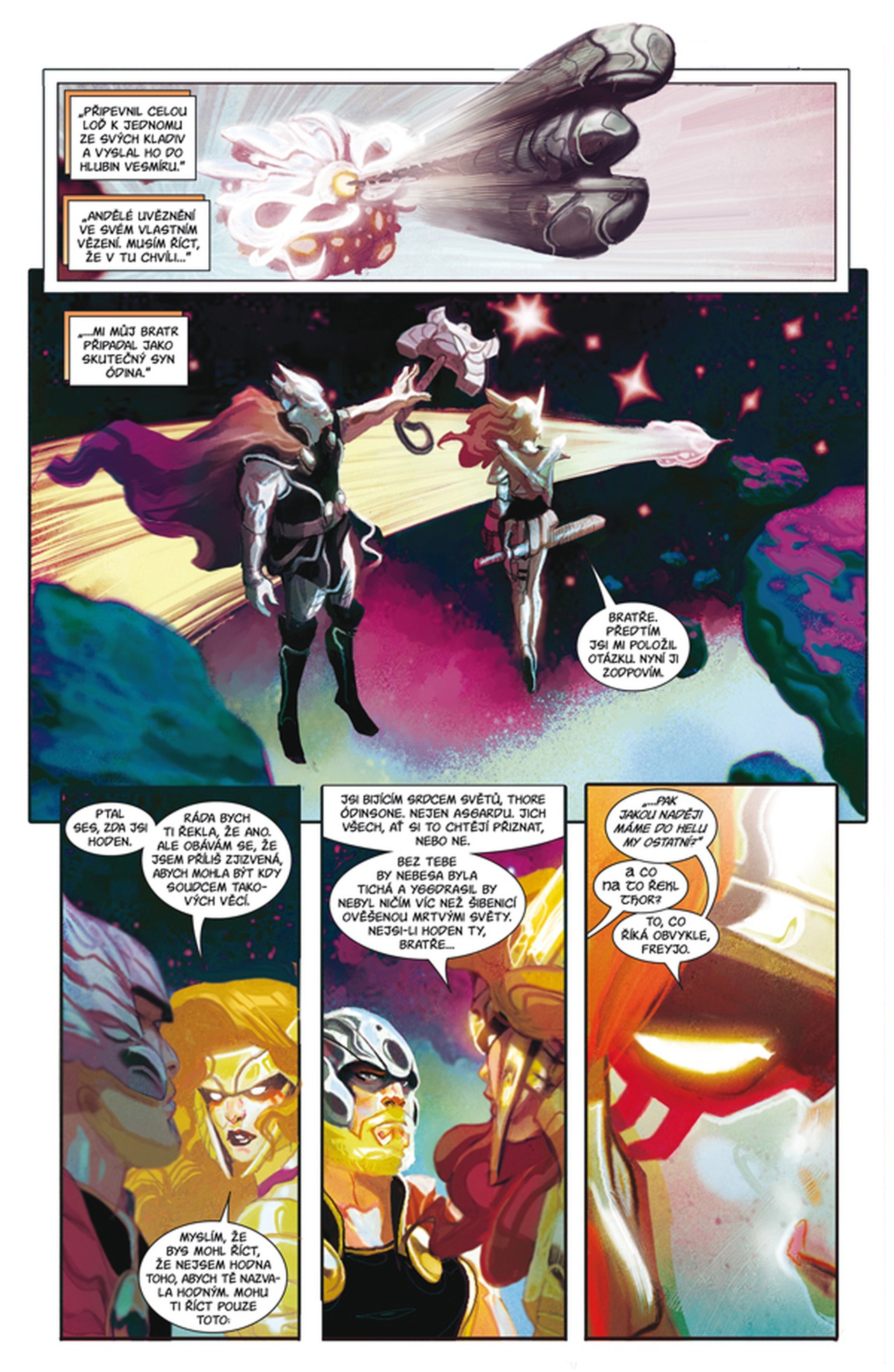 Thor se probil skrz Hel, ale nyní se ocitl jako vězeň v rukou hrozivých válečníků Hevenu! Bude zásah Valkyrie a Thorovy vražedné sestry Angely stačit k tomu, aby mohl bůh hromu utéct ze žaláře andělů, z něhož není úniku? Mezitím byla Roz Solomonová po zrušení S.H.I.E.L.D.u ponechána svému osudu... ale co nevidět se zhostí překvapivé nové role... a nadělá si milion nových nepřátel. Neboť válka se blíží... a invaze na Zemi již možná začala! Když Malekith cílí na celé veškerenstvo, zůstane Ódin Všeotcem ničeho? A navíc: před staletími se Ódin rozhodl udržet mladého Thora od Midgardu jednou pro vždy... a Loki přesně věděl, jak na to!