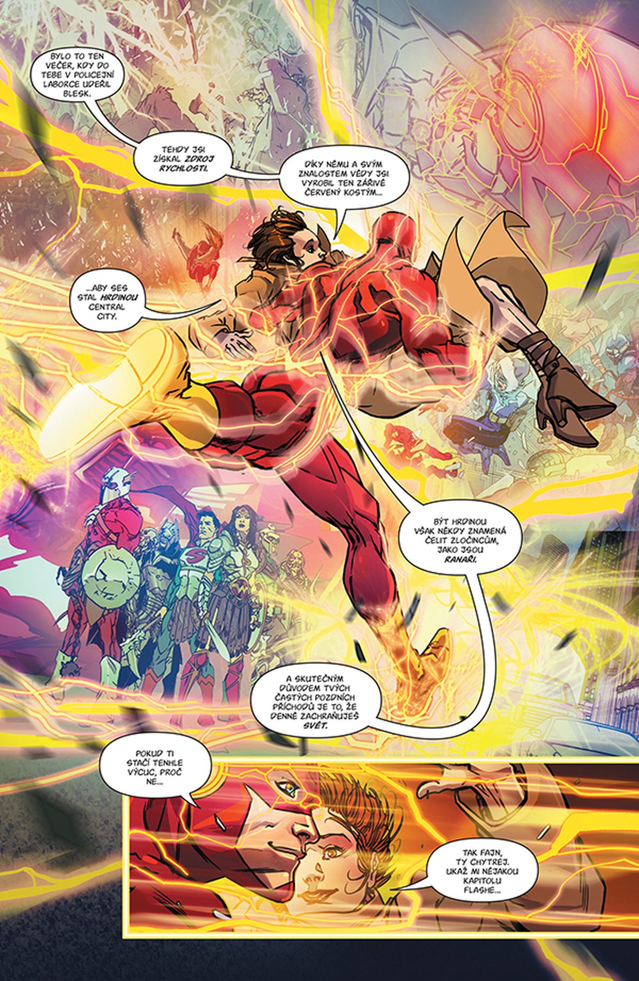 Špičkový autor JOSHUA WILLIAMSON (LIGA SPRAVEDLNOSTI VS. SEBEVRAŽEDNÝ ODDÍL) pokračuje ve své úspěšné jízdě spolu s výtvarníky CARMINEM DI GIANDOMENICEM, CARLOSEM D'ANDOU, DANEM PANOSIANEM a CHRISTIANEM DUCEM. Obsahuje sešity FLASH č. 39–45.