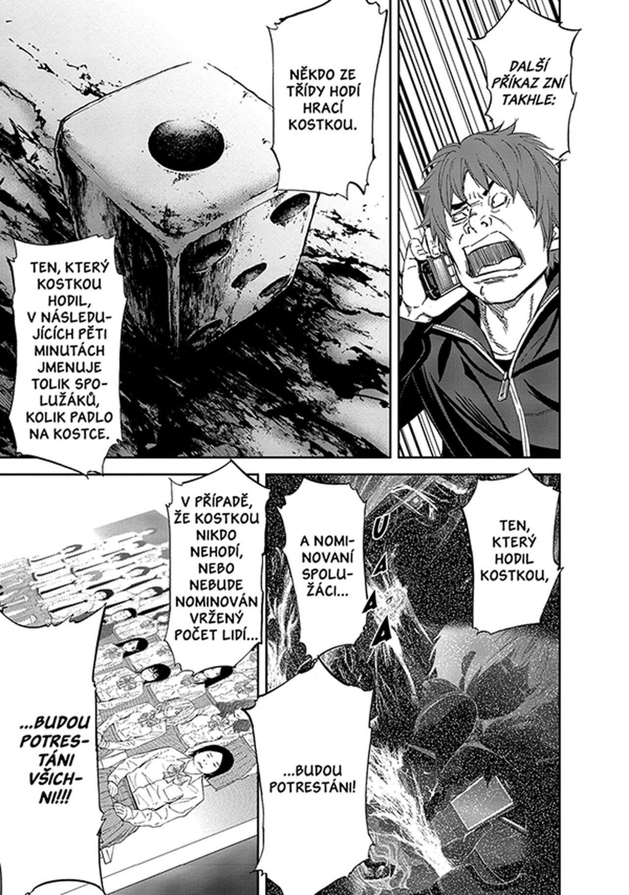 Všechno to začalo jednou zprávou od kohosi, kdo si říká Král. A nyní tu máme vyvrcholení příběhu! Žáci 1. B. jeden po druhém umírají. Přeživších už je pouhých 10. A nakonec dostal trest i Nobuaki, jenž navštívil vesnici Jonaki... Kdo nakonec zůstane naživu? A kdo se skrývá za tajemstvím opředenou postavou Krále?