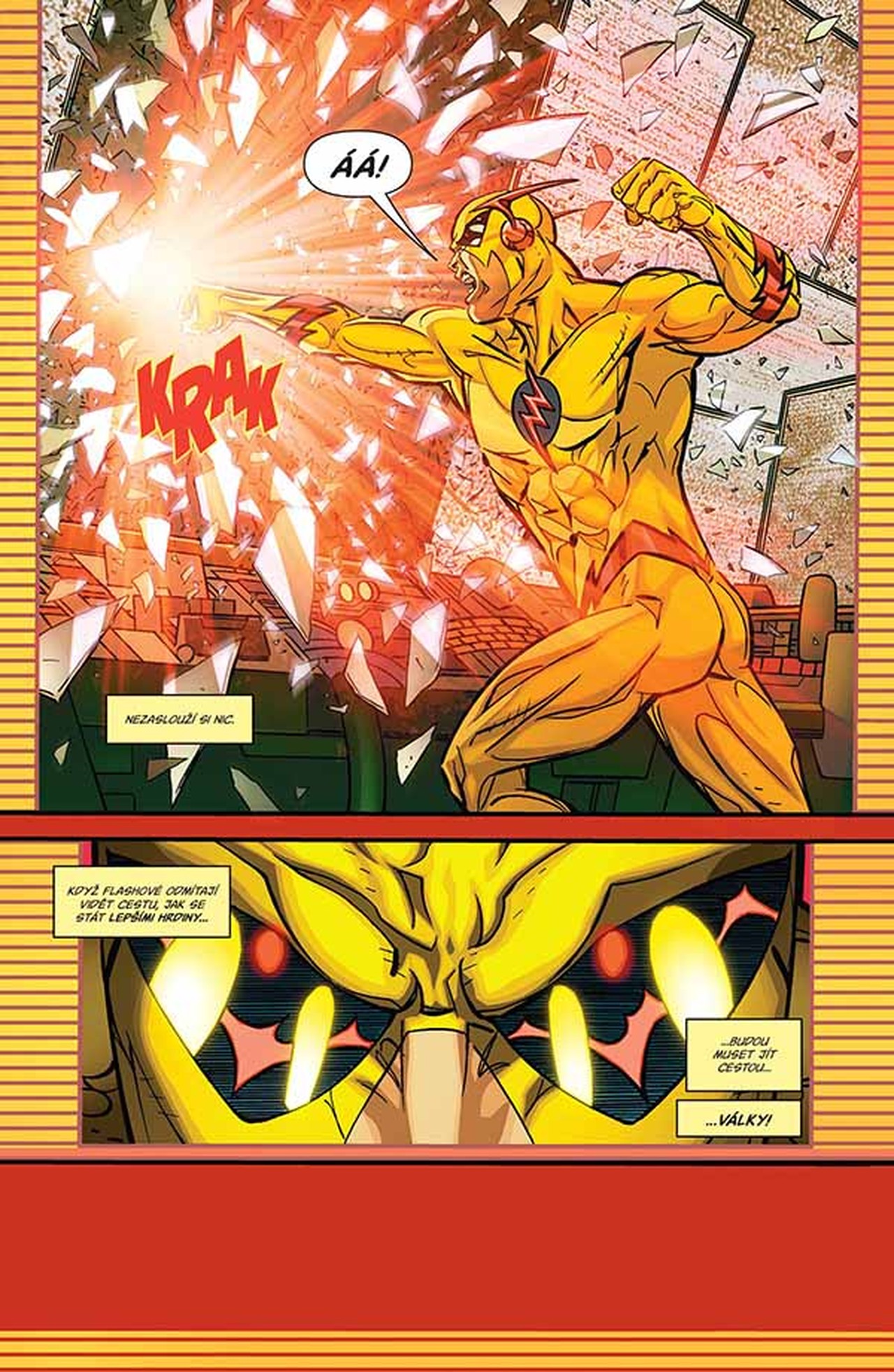 Scenárista JOSHUA WILLIAMSON (LIGA SPRAVEDLNOSTI VS. SEBEVRAŽEDNÝ ODDÍL) s výtvarníkem HOWARDEM PORTEREM (JLA) pokračují ve své úspěšné sérii dílem FLASH 8: VÁLKA FLASHŮ, jenž obsahuje sešity FLASH č. 46–51 a příběh ze sešitu FLASH ANNUAL č. 1. Na kresbě se podílel také SCOTT KOLINS (BLUE BEETLE, ACTION COMICS).