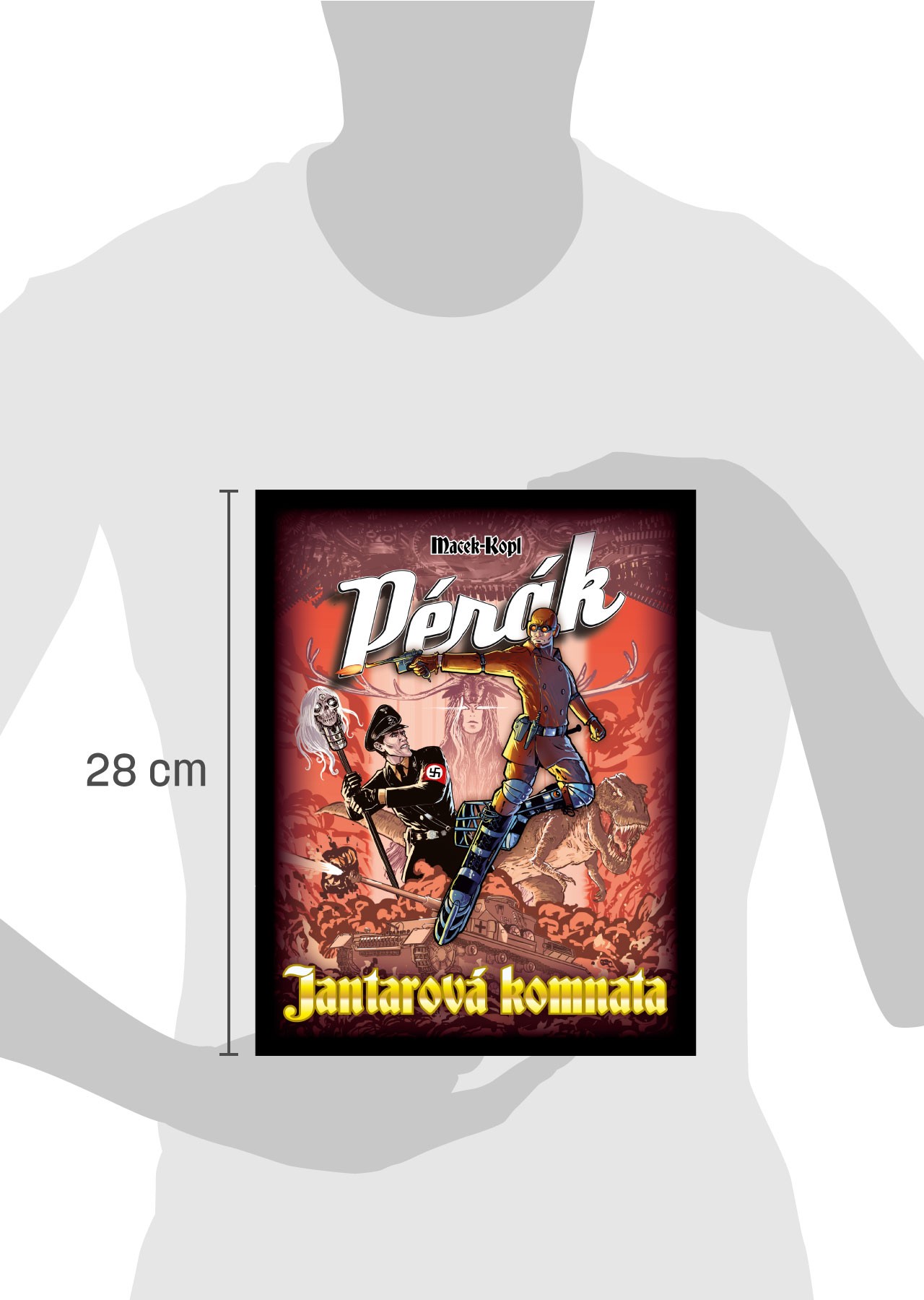 Hitlerova okultní organizace Thule vedená majorem Vernerem se zmocnila Jantarové komnaty, historického artefaktu nevyčíslitelné ceny, jemuž jsou přisuzovány tajemné schopnosti. Pérák má navíc s Vernerem nevyřízené osobní účty – tento zákeřný nacista a manipulátor jej připravil o partnerku i nenarozené dítě. Dokáže touhou po pomstě zaslepený hrdina ještě rozlišit, co je v honbě za zúčtováním ospravedlnitelné? Pérák se při stíhání Vernera musí dostat přes řadu překážek – třeba přes armádu wehrmachtu slídící v šumavských hvozdech po skrýši partyzánů nebo doktorem Mengele „vyšlechtěného“ slovenského supervojáka Fosforáka. Ve velkolepém finále se pak splétají linky minulosti, přítomnosti i příběhů načatých v předcházejícím grafickém románu Pérák: Oko budoucnosti. Najde Pérák vytoužený klid?