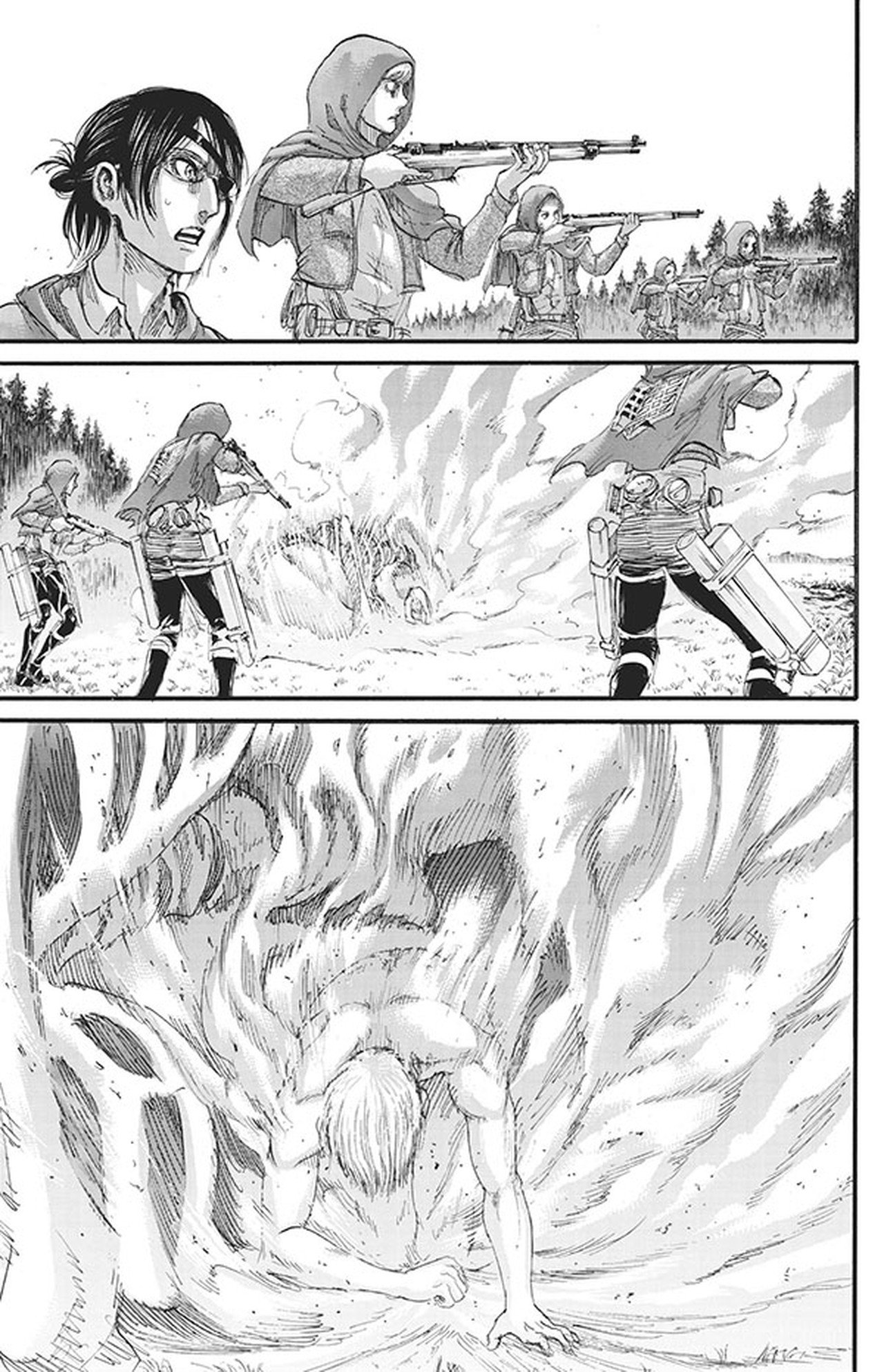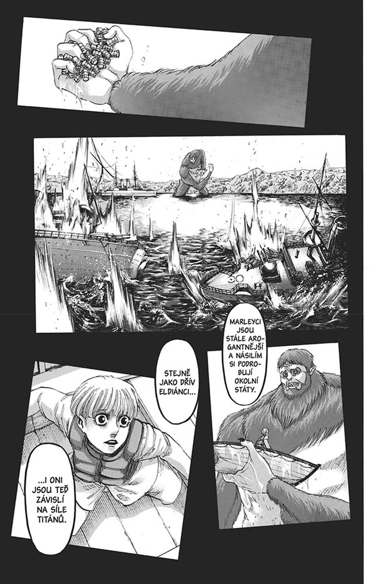 Všechno je nakonec jinak, než se původně zdálo. Přátelé jsou nepřátelé, domnělí nepřátelé oplývají ušlechtilými úmysly a nic není jako dřív. Eren je odhodlán splnit svůj úkol, ale ve světě převráceném naruby je těžké najít pevnou půdu pod nohama... obzvláště pokud se blíží pořádné zemětřesení.