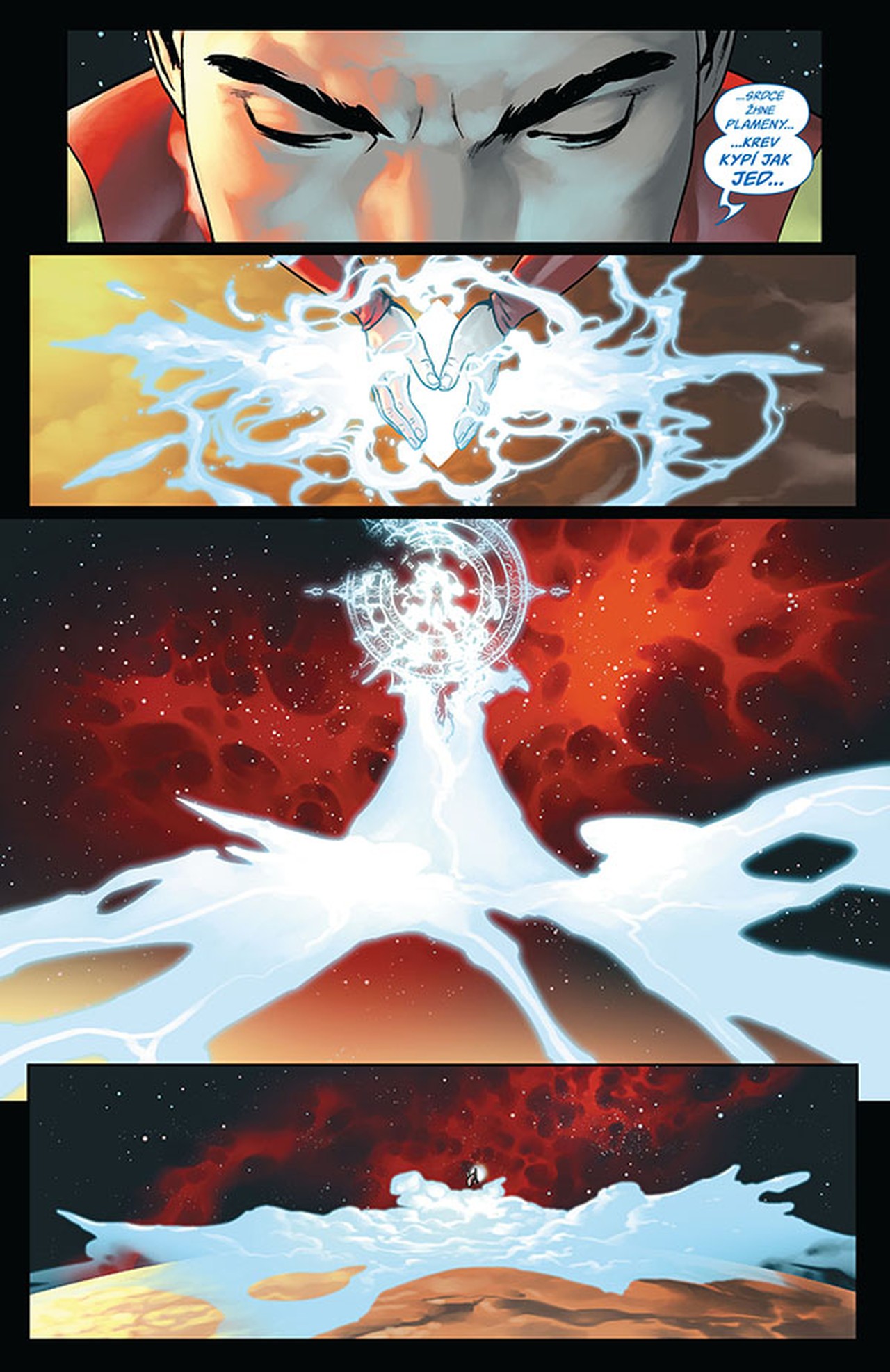 KDYŽ STEPHEN STRANGE ztratí své mistrovství v okultním umění, nabídne mu Tony Stark řešení hodné jednadvacátého století: má po nové magii zapátrat ve vesmíru! Bizarní nová kouzla, noví spojenci i nepřátelé – s tím vším se Strange mezi hvězdami potkává, zatímco odkrývá nikdy dříve nepoznaná zákoutí a tajemství marvelovského vesmíru. Jenže záhy se ocitá v zajetí nepřátelské civilizace. Dokáže Strange daleko od domova, bez své moci a přátel, přesvědčit jistou mimozemšťanku s nevyslovitelným jménem, že je hoden záchrany? Válka nekonečna se blíží, a on se svou novou společnicí čelí Super-Skrullovi, který v rukou třímá Kámen času!