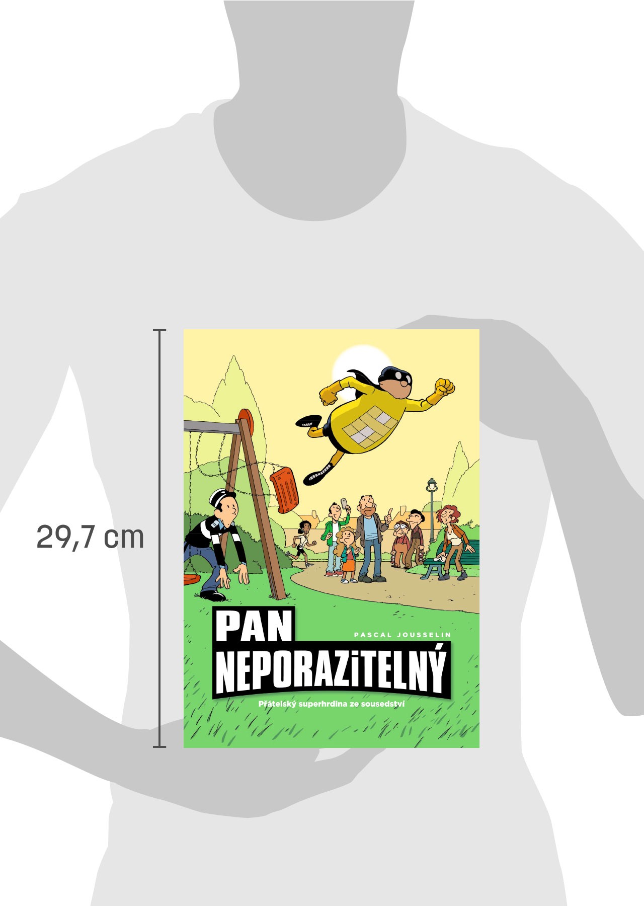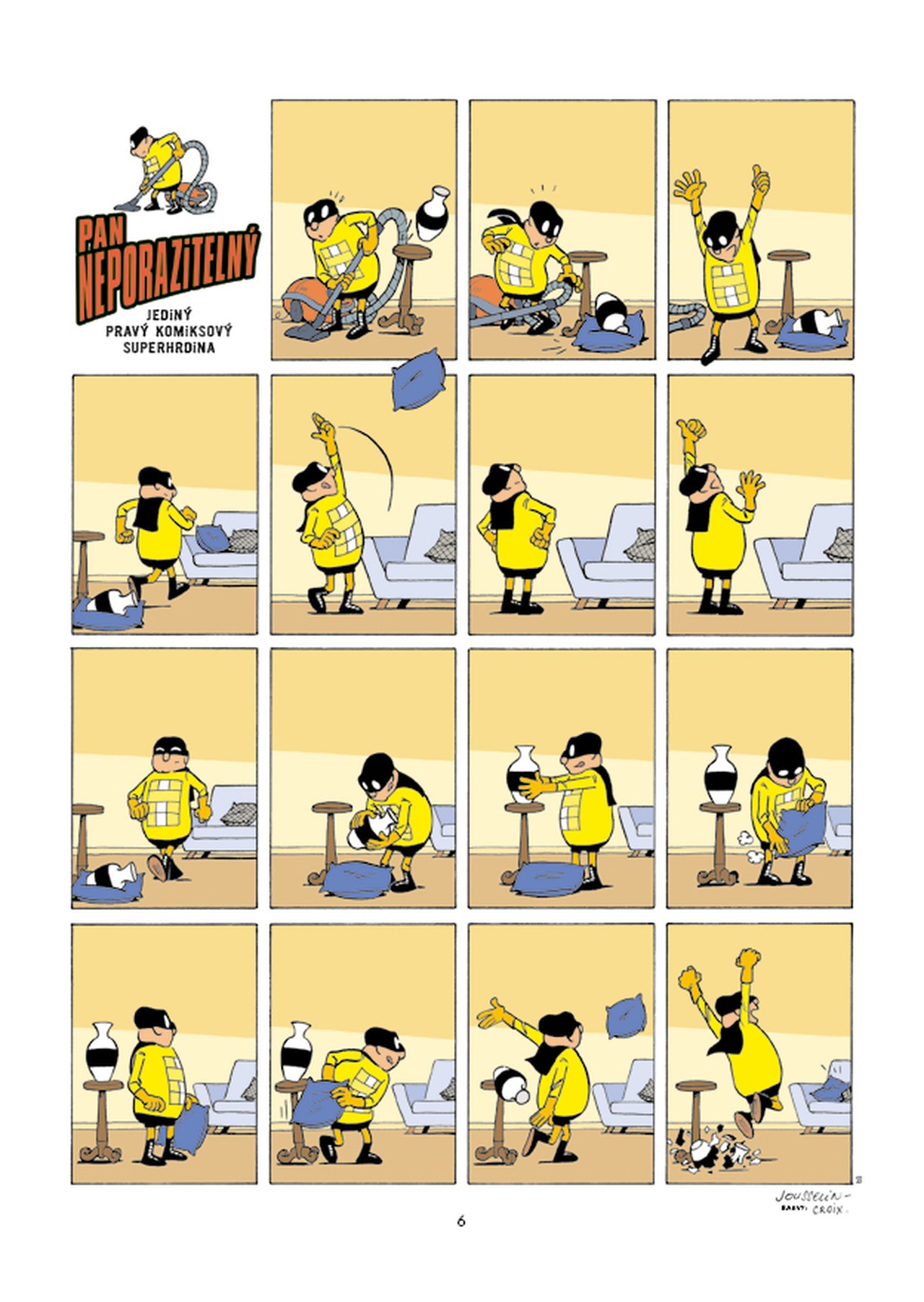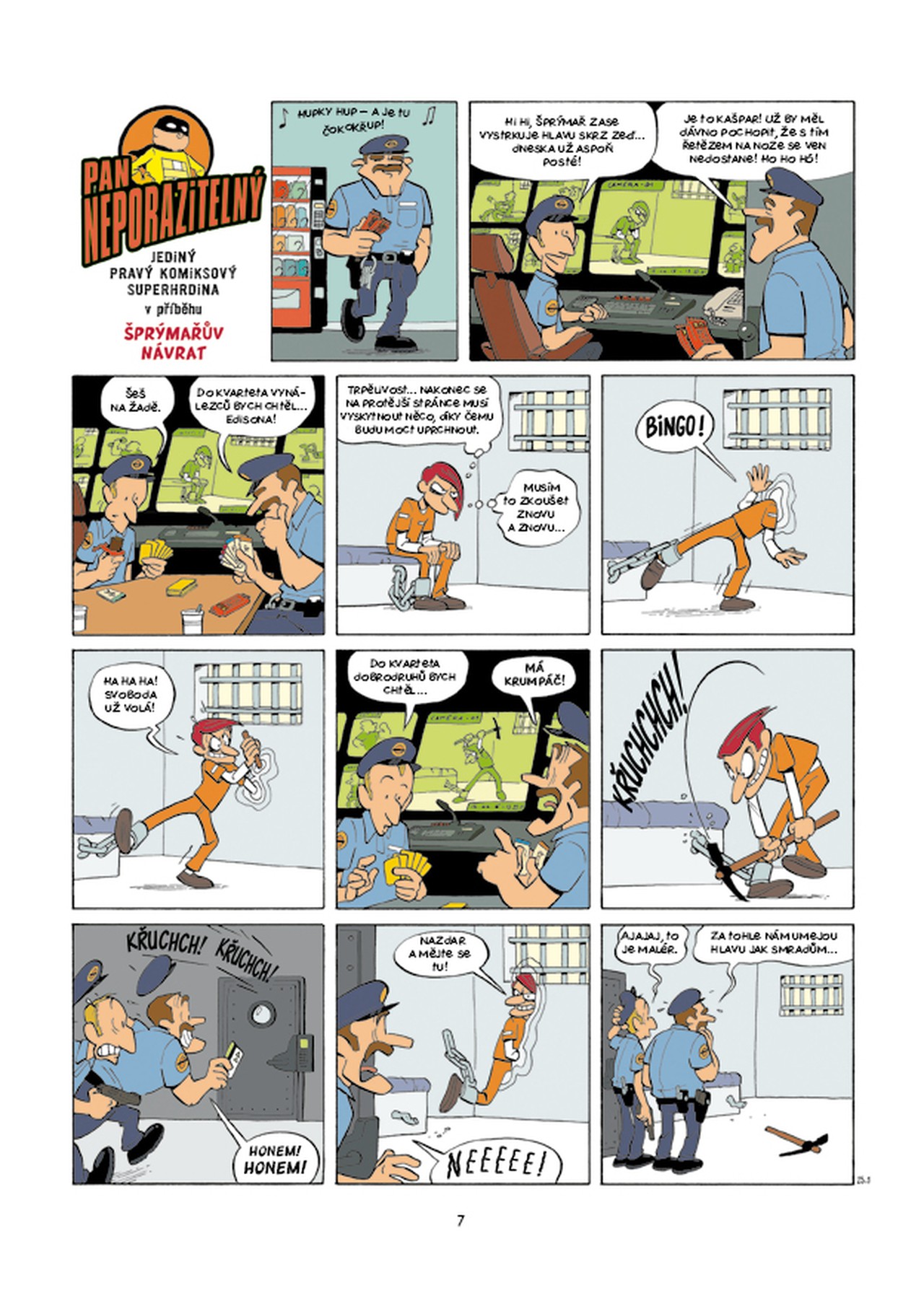 Náš jediný a skutečný komiksový hrdina se umí pohybovat mimo panely i stránky svého stripu a porušovat zákony „komiksové fyziky“! Ve druhém dílu svých příběhů se znovu utká se Šprýmařem, potká mimozemšťana a střihne si s kamarády i komiksovou „týmovku“, samozřejmě v Americe. Ostatně proč ne, když se tam podívali i četníci ze Saint-Tropez…