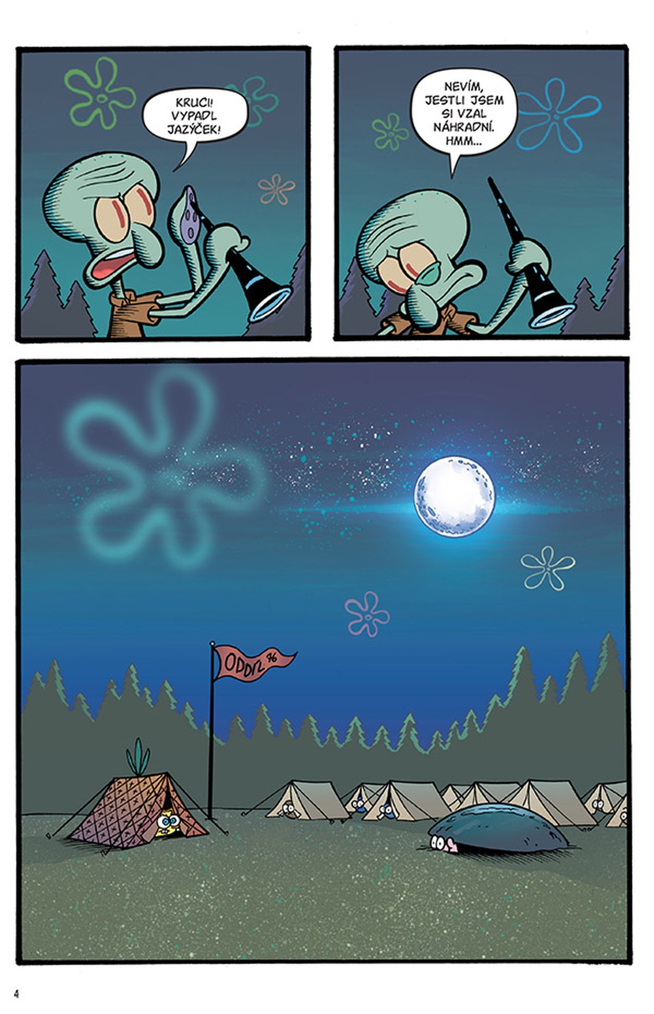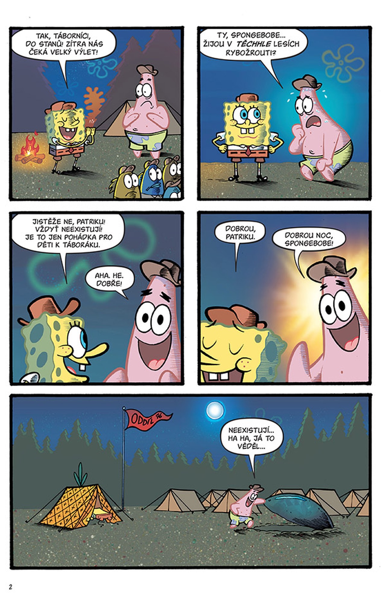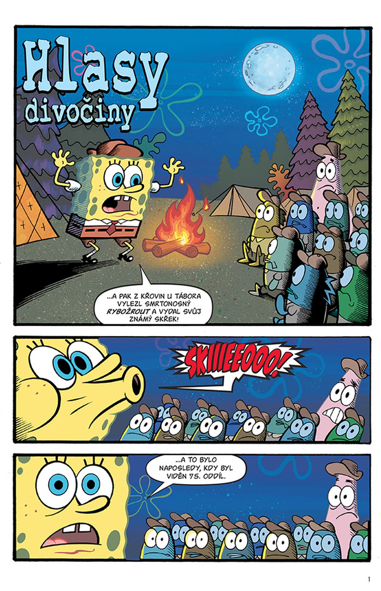 V tomhle čísle se vydáte stanovat do divočiny… ale nelekněte se, až se ozve strašidelné volání! No a když si Patrik vyrazí do města nahatý a SpongeBobovi zase vyraší pupínek – hrůza! Naštěstí Supermořec s Ploutvoklukem zachrání situaci na pláži v Zátiší Bikin, takže se nakonec všichni zasmějeme, a to nejen Spongelegráckám a SpongeBobově fusekli!