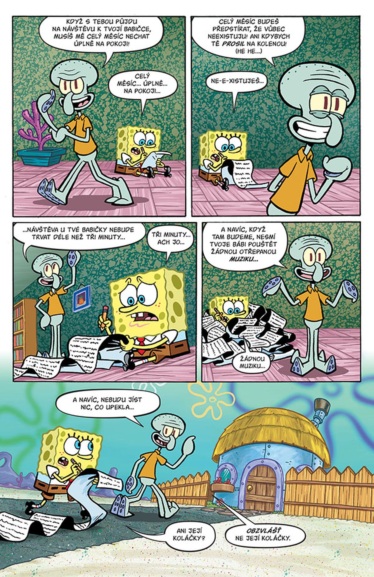V tomto sešitě zjistíme, zda bude SpongeBob žárlit, když si Sépiák oblíbí jeho babičku. A jestli je nejlepší nápad vzít s sebou na luxusní jachtu SpongeBoba a Patrika. Vyplatí se panu Krabsovi pořádat v restauraci boxerská utkání? Ale hlavně mě zajímá – čistí si hvězdice zuby nití?