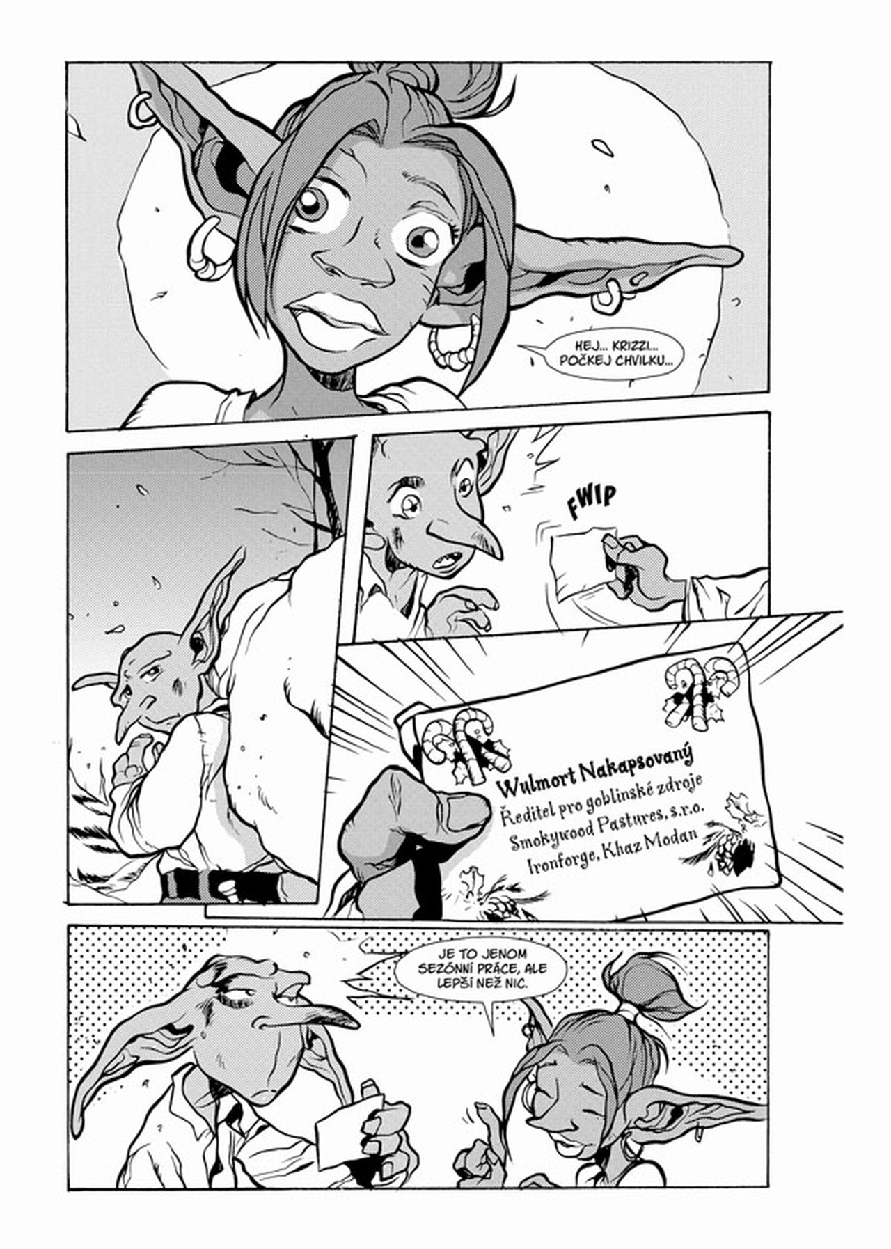 Renomovaná autorka Christie Goldenová přináší příběh o smolaři Krizzovi, goblinovi, který hledá způsob, jak si snadno vydělat… i kdyby to znamenalo hrát Praotce Zimy. Ale jeho sváteční starosti se nečekaně změní ve sváteční radosti, když si ho za svého hrdinu vyvolí malá gnómská holčička…
