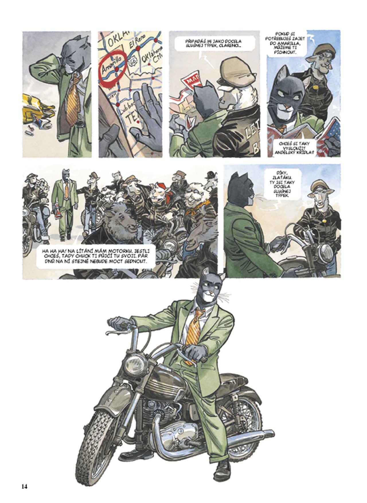 Blacksad je zpátky! Konečně se početné šiky fanoušků černého pantera, soukromého detektiva, který ve stylu drsné školy řeší složité případy a samotářsky se prodírá mravním bahnem světa, dočkaly. Nový svazek tvoří původní páté album série, Amarillo, a rozsáhlejší, dvoudílný příběh šestého a sedmého alba, nazvaný Pak se všechno hroutí.