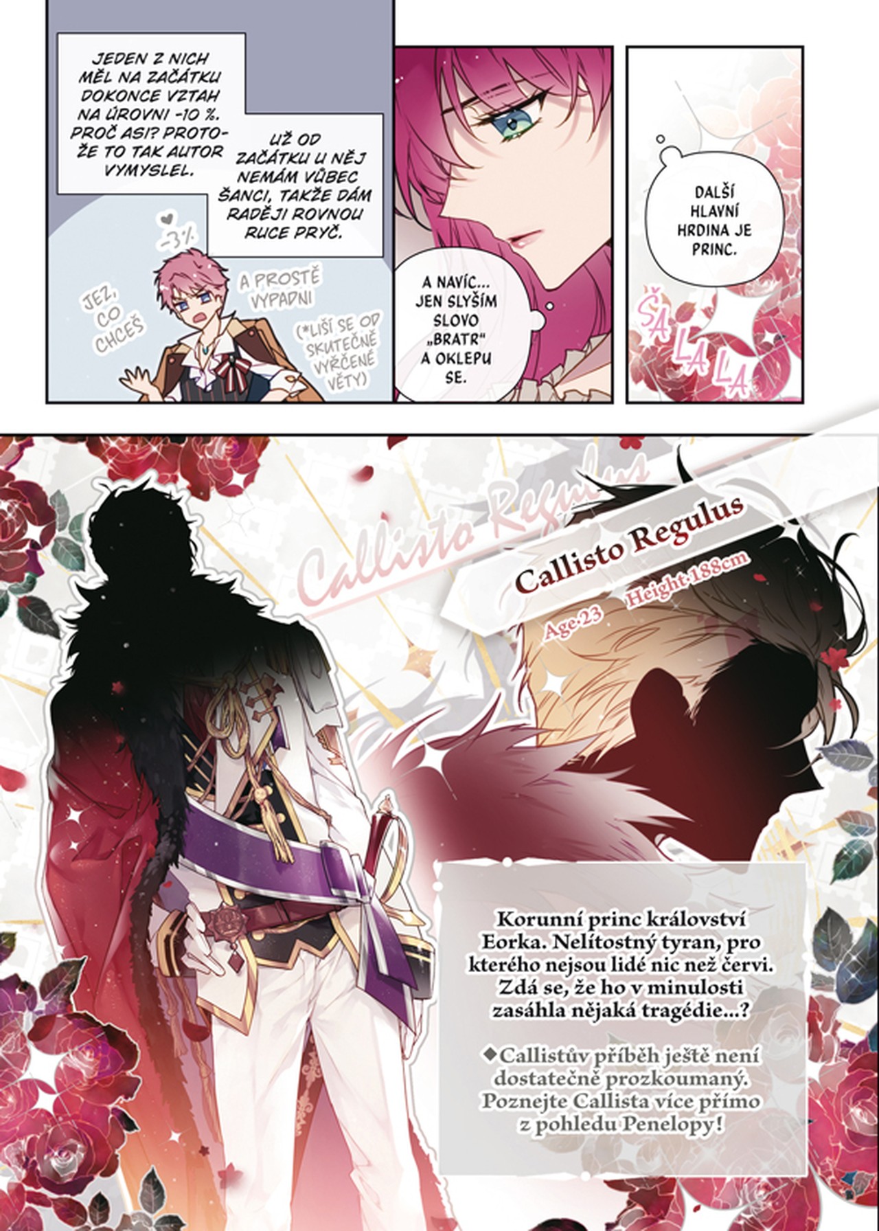 Jenže stačí usnout u harémovky, kterou teď žijí všechny její kamarádky, aby se probudila přímo ve hře – jako Penelope Eckhartová, hlavní záporačka celého příběhu! Novopečená Penelope nemá čas ani pomýšlet na návrat do vlastního světa. Pokud totiž nestihne získat srdce jedné z pěti hlavních mužských postav dřív, než se vrátí skutečná dcera vévody a hlavní hrdinka hry, nečeká ji nic než smrt! Koho si nakonec Penelope v tomto tanci na ostří nože vybere za svého vyvoleného?