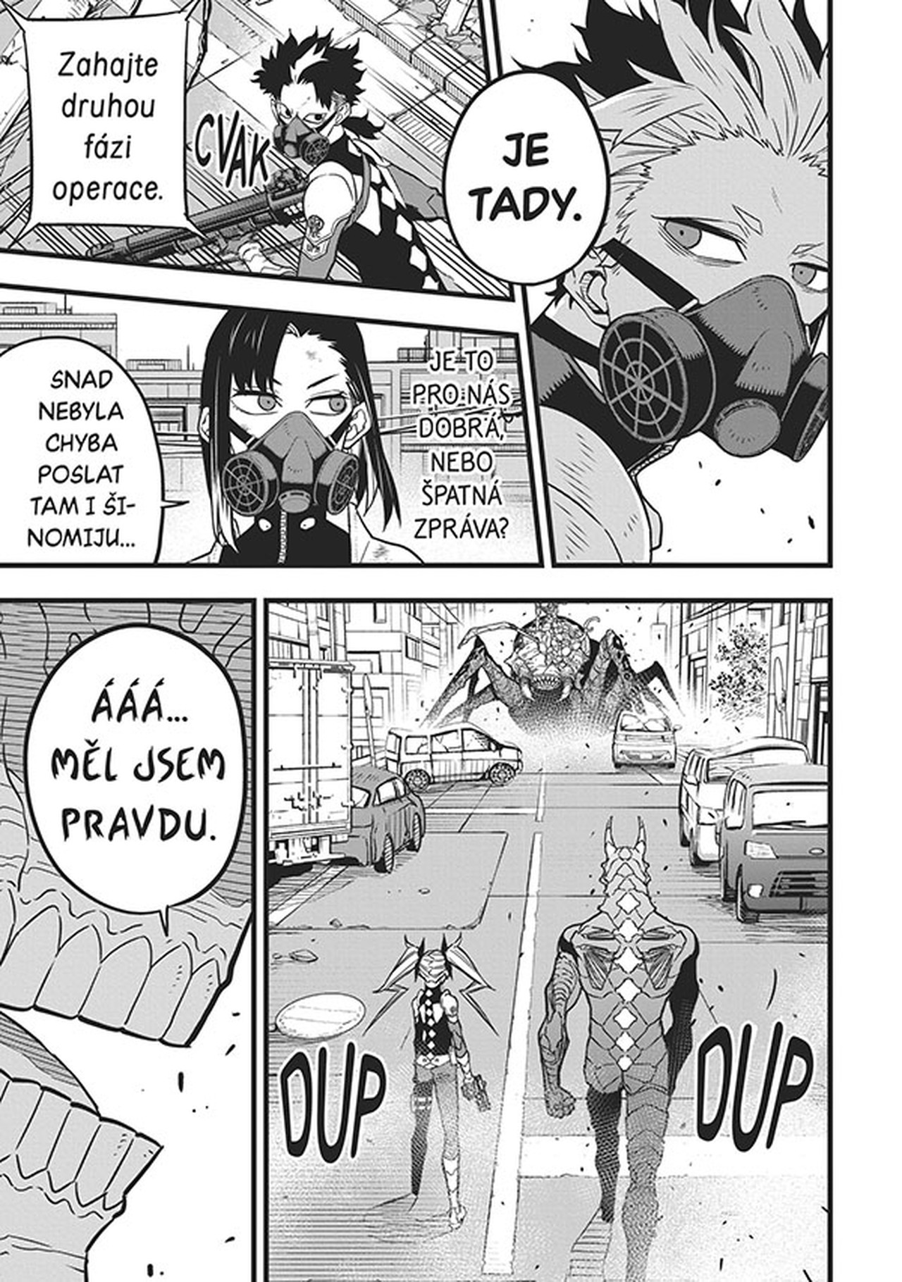 Neočekávané střetnutí s Nestvůrou číslo 9 postavilo Kafku před problém, jakému dosud nikdy nemusel čelit – jeho schopnost přeměny vypověděla službu. I když Kafka díky rychlému zásahu Kikoru vyvázl živý, stále ještě nemají vyhráno. Jejich nepřítel je silný a není sám – identická kopie Čísla 9 se totiž zjevila i před kapitánem Narumim!
