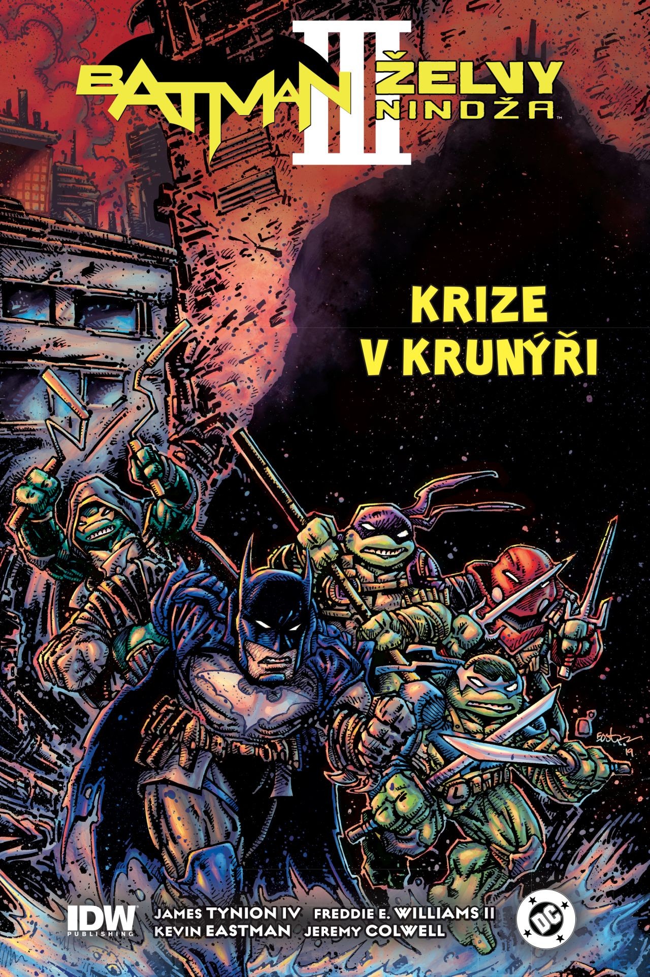 Velkolepé dobrodružství se odehrává v komiksu BATMAN/ŽELVY NINDŽA: Krize v krunýři v ohromujícím crossoveru od scenáristy Jamese Tyniona IV a výtvarníka Freddieho E. Williamse II... za účasti zvláštního hosta Kevina Eastmana, legendárního spolutvůrce Želv nindža! Komiks obsahuje sešity BATMAN/ŽELVY NINDŽA: Krize v krunýři č. 1–6.