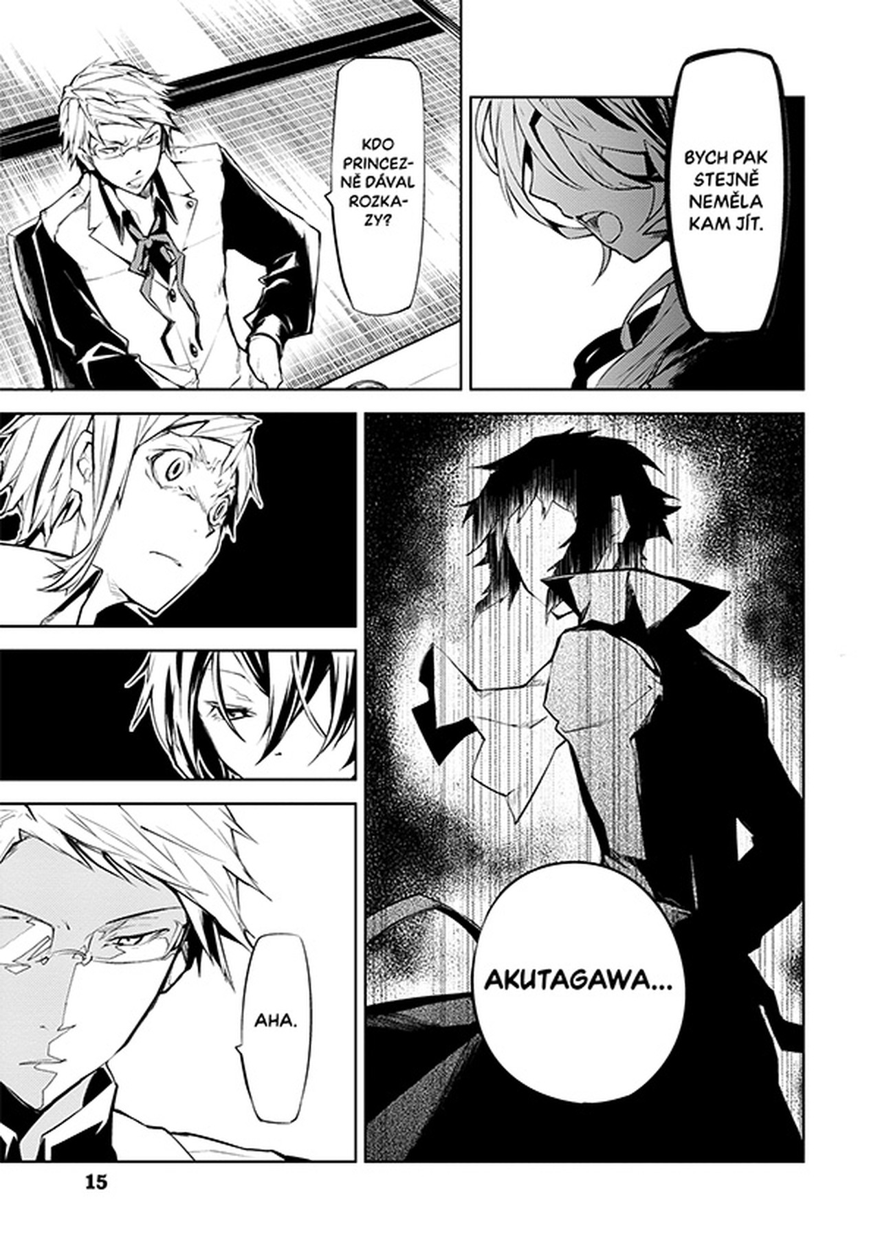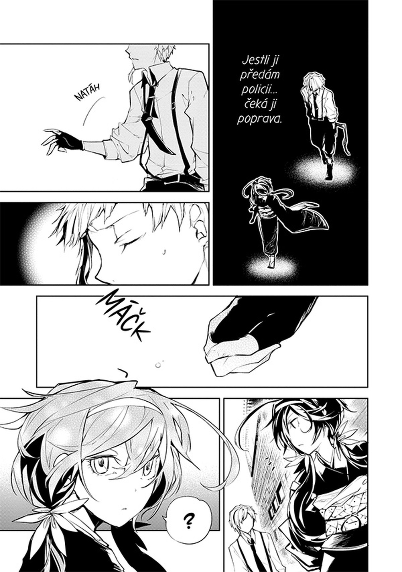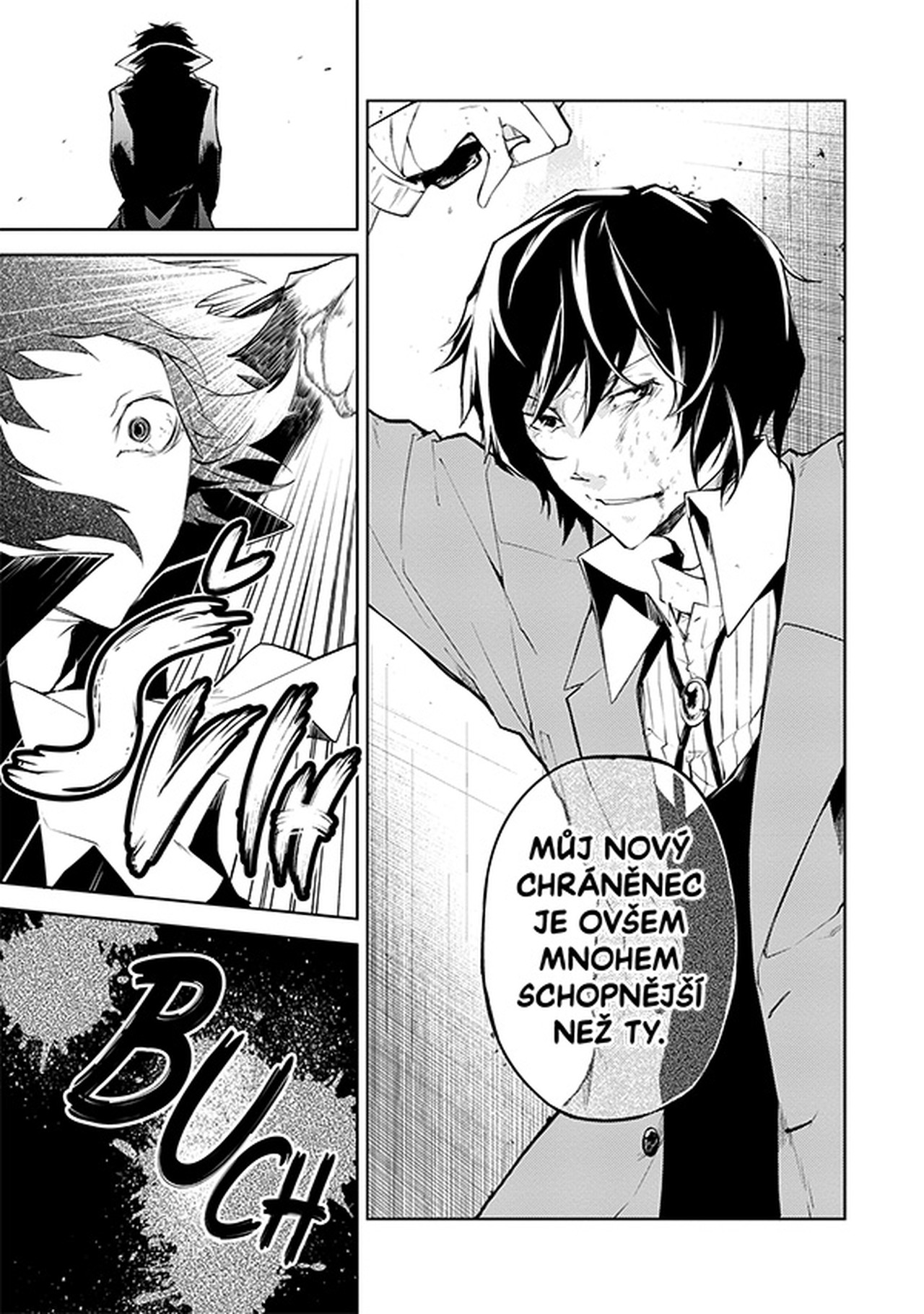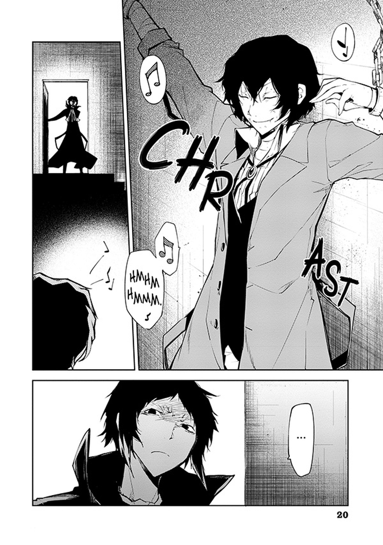 Zajatý Dazai se mezitím setkává se svým bývalým parťákem Čújou Nakaharou. Zvítězí nakonec Zvláštní detektivní kancelář, nebo Přístavní mafie?